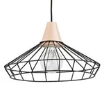 Druciana lampa kratka WART czarna/drewno śr. 40cm