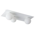 Minimalistyczny plafon z kloszami w kształcie kul montowane na smukłej podsufitce.