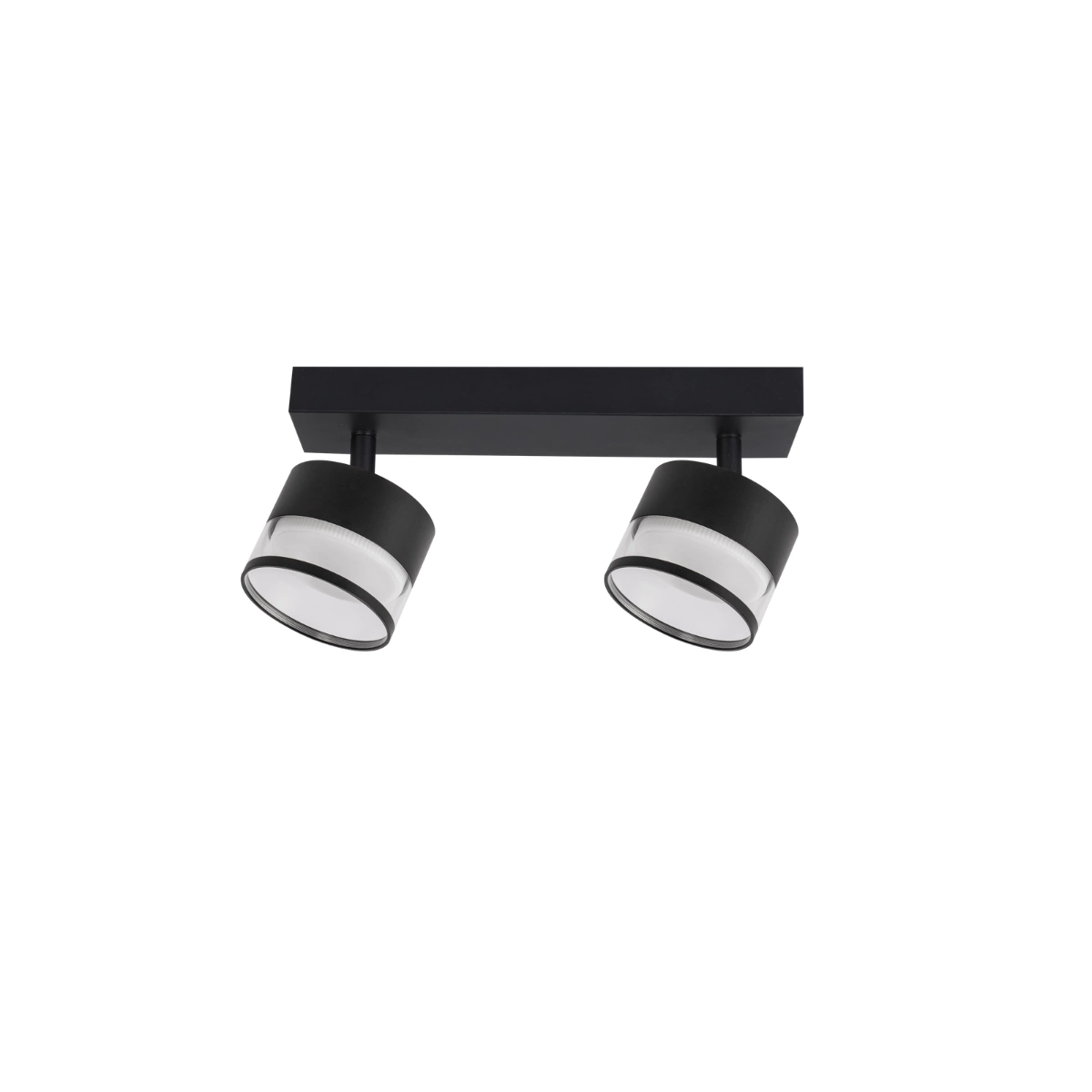 Kendal 2 transparent/czarny to elegancki, nowoczesny reflektor sufitowy z dwiema regulowanymi głowicami. Matowa czerń połączona z transparentnym pierścieniem akrylowym tworzy wyjątkowo stylowe zestawienie, które wprowadza do wnętrza lekkość i nowoczesny charakter. Dwa niezależne źródła światła GX53 (LED do 7W każde) pozwalają skierować światło dokładnie tam, gdzie jest potrzebne. Kendal 2 transparent/czarny – szczegóły Styl i design: Minimalistyczna forma, eleganckie połączenie czerni z transparentnym detalem.Materiały: Metal, akryl.Wymiary: Szer. 26 cm × Gł. 8,5 cm × Wys. 9,5 cm.Źródło światła: 2 × GX53, max LED 7W (wymienne).Kolor: Transparentny/czarny.Zastosowanie: Salon, kuchnia, korytarz, biuro, przestrzenie komercyjne. Nowoczesna forma i pełna funkcjonalność Kendal 2 to doskonałe połączenie estetyki i praktyczności. Transparentne akrylowe detale dodają lampie lekkości, a ruchome głowice umożliwiają precyzyjne ustawienie kierunku światła według potrzeb.