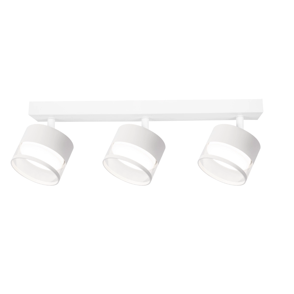 Kendal 3 transparent/biały to elegancki reflektor sufitowy z trzema regulowanymi źródłami światła. Jego prosta, nowoczesna forma oraz połączenie matowej bieli z transparentnym pierścieniem akrylowym tworzą spójną i lekką kompozycję. Dzięki trzem niezależnym punktom GX53 (LED do 7W każdy), lampa doskonale oświetla większe przestrzenie, zapewniając równomierne i przyjemne światło. Kendal 3 transparent/biały – szczegóły Styl i design: Minimalistyczna, nowoczesna forma z delikatnym transparentnym akcentem.Materiały: Metal, akryl.Wymiary: Szer. 32,5 cm × Gł. 8,5 cm × Wys. 9,5 cm.Źródło światła: 3 × GX53, max LED 7W (wymienne).Kolor: Transparentny/biały.Zastosowanie: Salon, kuchnia, korytarz, biuro, sypialnia. Nowoczesne oświetlenie z klasą Kendal 3 to propozycja, która łączy funkcjonalność z elegancką estetyką. Transparentne detale wprowadzają subtelny efekt wizualny, a trzy regulowane głowice pozwalają na idealne dopasowanie światła do każdej przestrzeni.