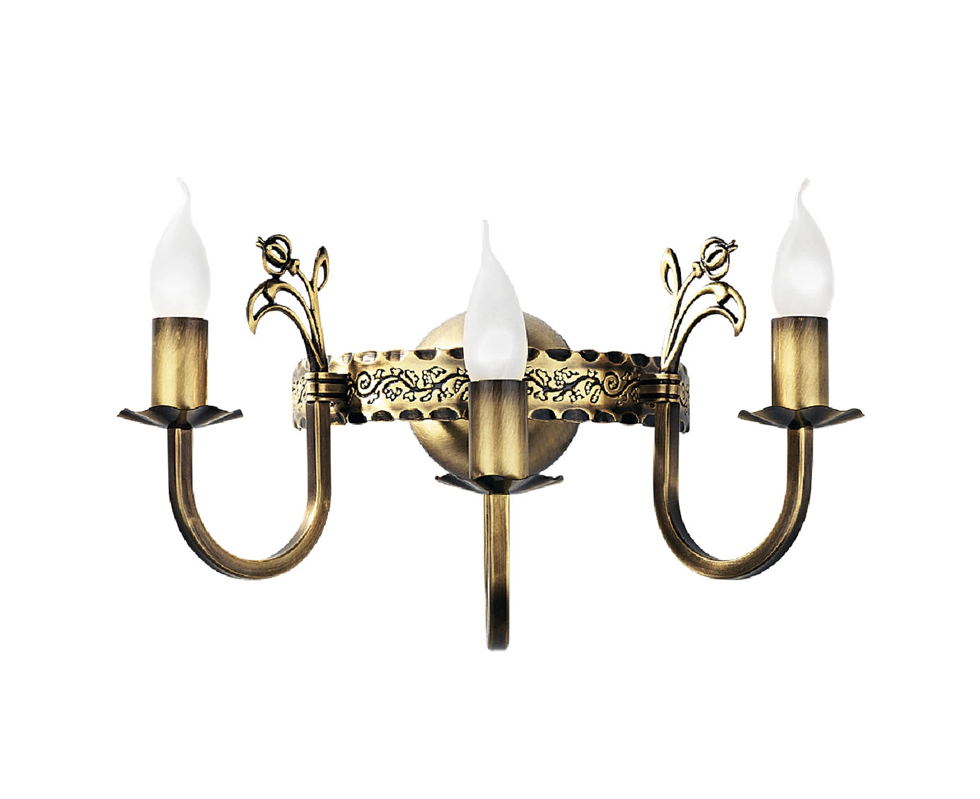 Klasyczny Kinkiet KORONA wys. 25cm 3xE14 11W IP20 | Mosiądz patynowany