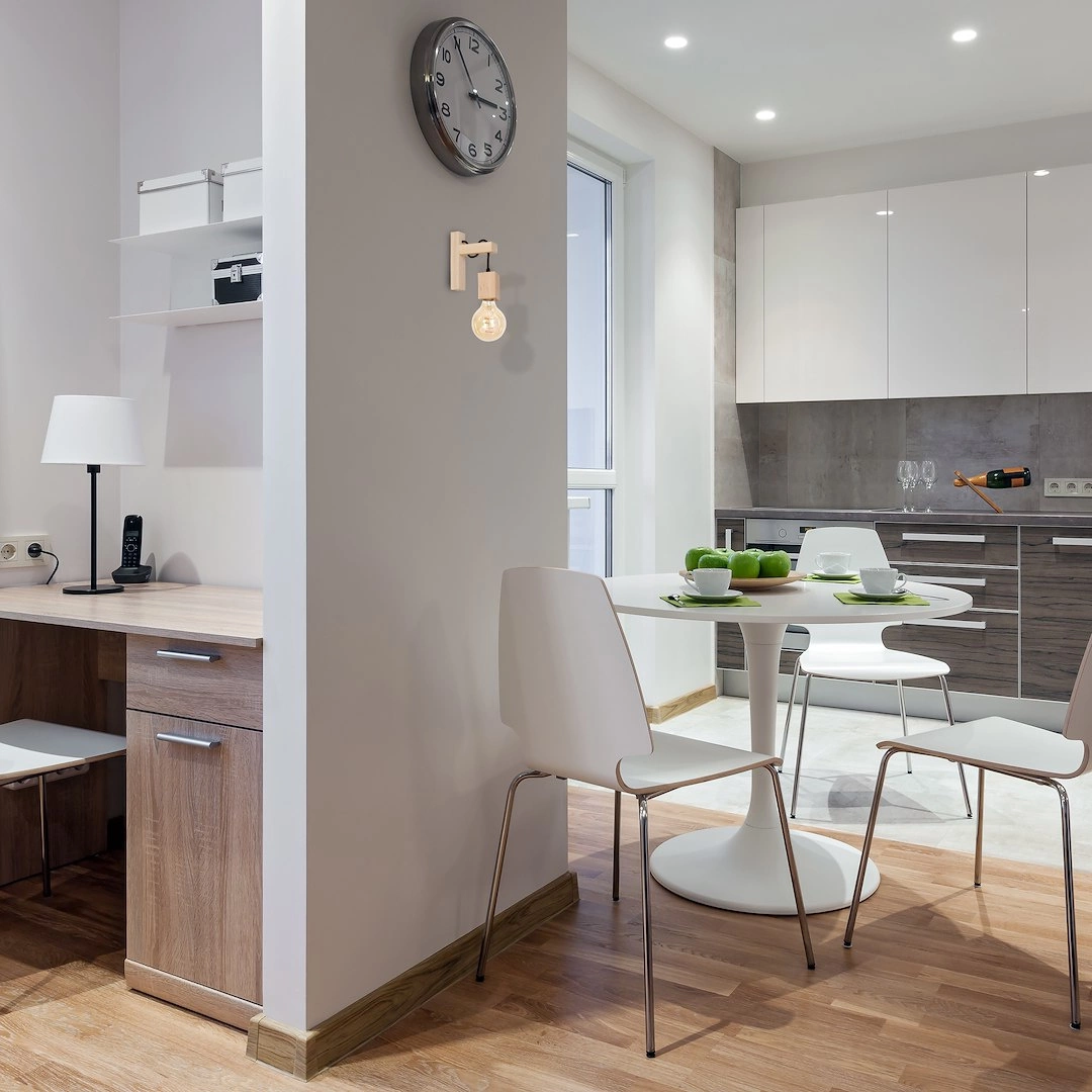 Lampa JACK 581 została wykonana w rustykalnym stylu. Dzięki drewnianym elementom model ten doskonale wpasuje się w minimalistycznie urządzone salony i sypialnie. Stworzy doskonały duet z bielą ścian i szarością umeblowania. Kinkiet JACK 581 można zestawić w zgrabną kompozycję. Dwie sztuki doskonale sprawdzą się po obu stronach kanapy w pokoju dziennym lub nad zagłówkiem łóżka w sypialni. Do lampy można dobrać inne modele z tej serii, np. żyrandol JACK 583.