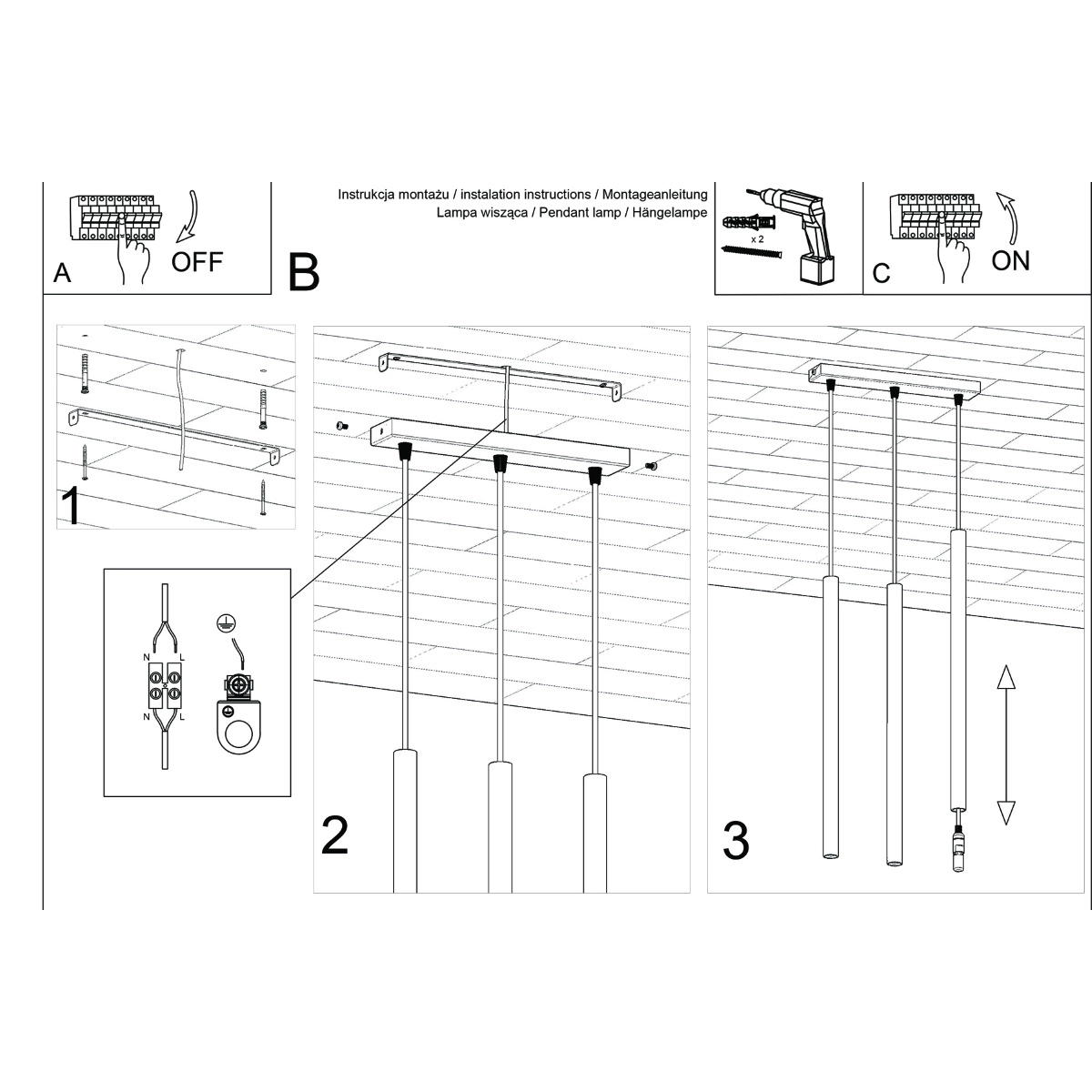 • Źródło światła: G9, 3x max 8W LED, ~230V, 50Hz, IP20, klasa ochronności I