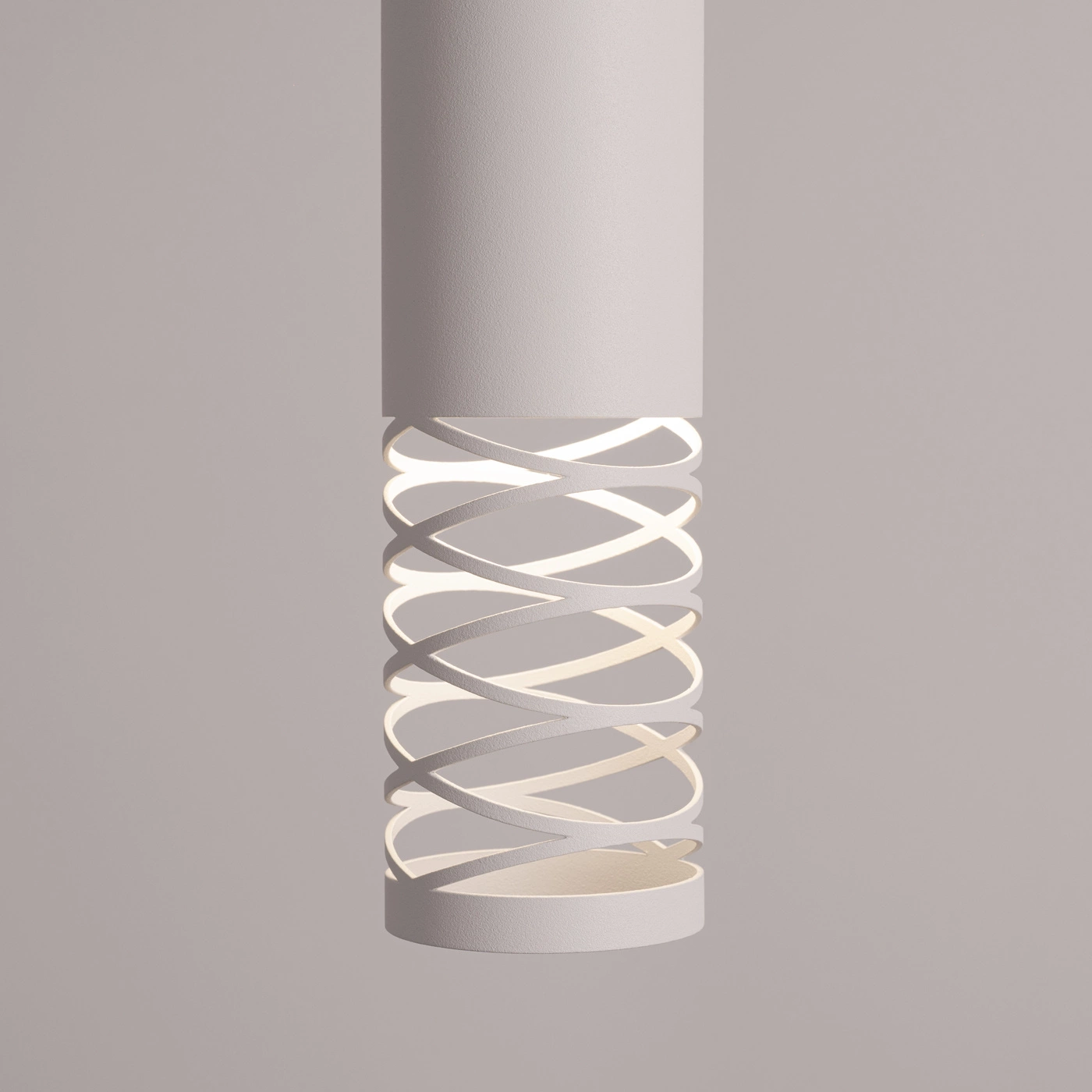 LAMI to nowoczesna lampa, która łączy prostotę cylindrycznej formy z oryginalnym, ażurowym wykończeniem. Charakterystyczny, spiralny detal sprawia, że światło przenika przez dekoracyjne wycięcia, tworząc wyjątkowy efekt wizualny na ścianach i w otoczeniu.