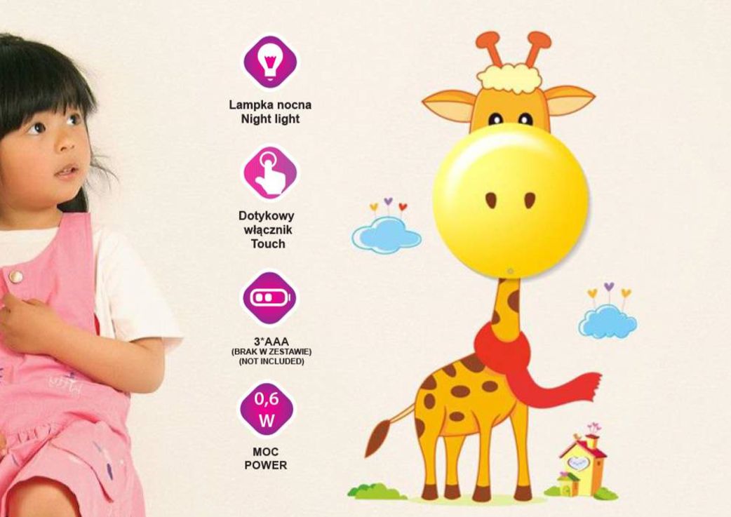 Lampa dziecięca Żyrafa GIRAFFE 3xAAA