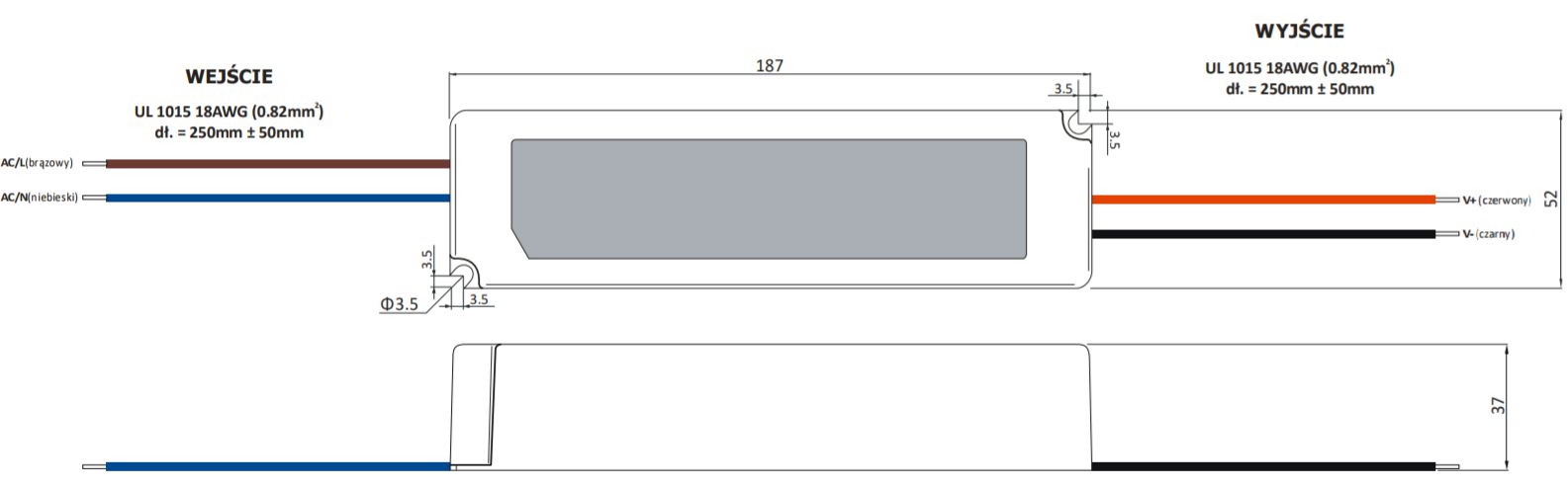 187 x 52 x 37mm (dł. x szer. x wys.)