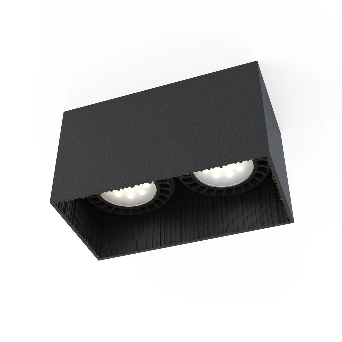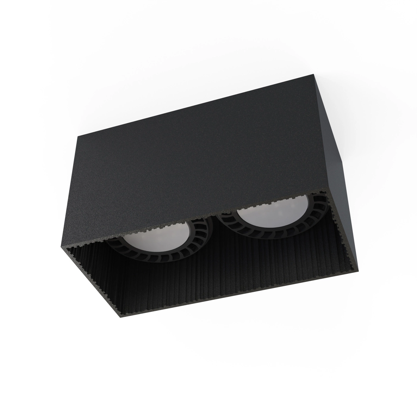 Prostokątna lampa w kolorze czarnym posiada w sobie dwa źródła światła.