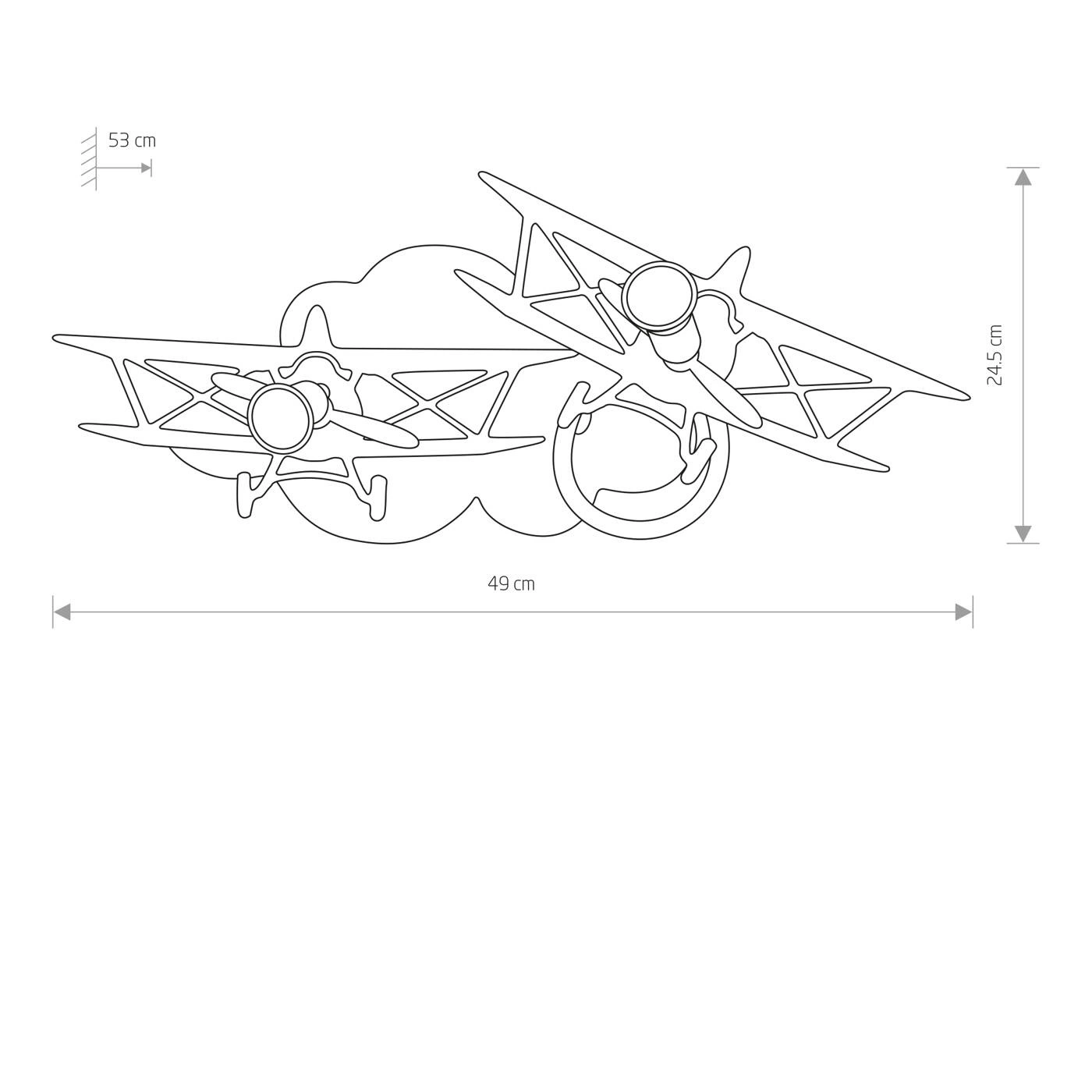 Plafon PLANE to ciekawa lampa do pokoju dziecięcego w kolorze niebieskim i motywem samolotów.