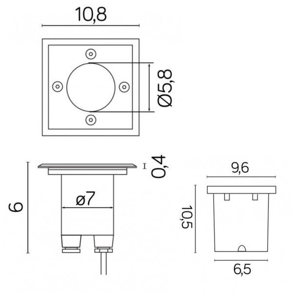 Lampa o wysokim systemie szczelności IP67 do wbudowania w powierzchnie utwardzone (kostka brukowa, glazura, terakota, deski, beton) lub bezpośrednio w przygotowanym wcześniej gruncie.