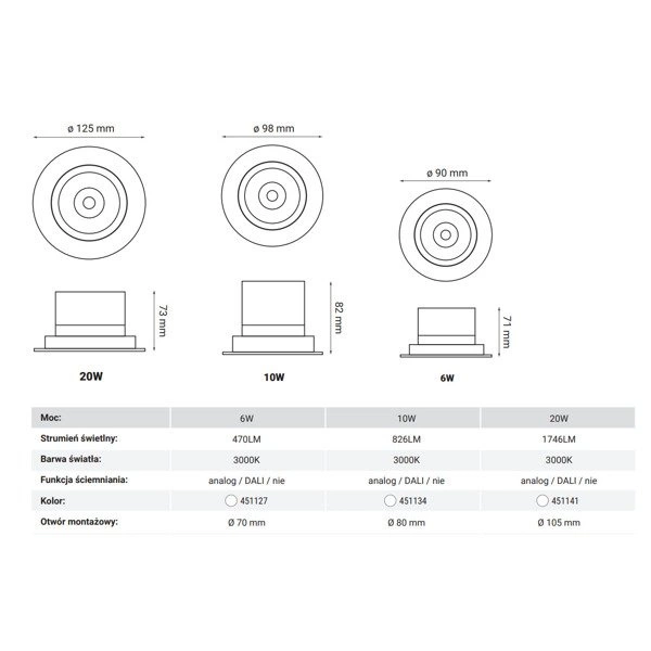 Oprawa wpuszczana BRADI RO 10W ciepła 3000K śr. 9,8cm