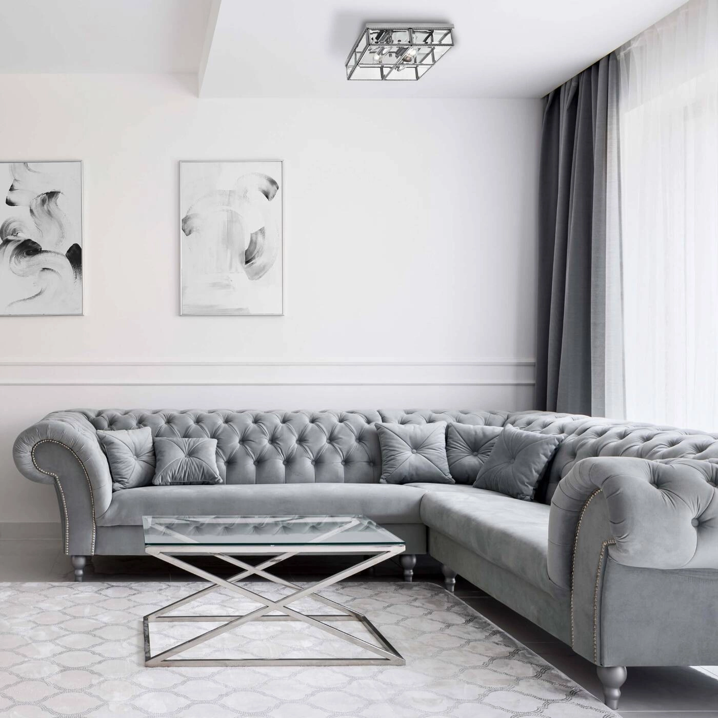 MONZA LP-2323/2C to stylowa lampa sufitowa z dwoma źródłami światła. Wykonana została z wysokiej jakości metalu w kolorze chromowym i transparentnego szkła. Oprawa będzie idealnym wyborem do wnętrz urządzonych w stylu klasycznym oraz nowoczesnym. Doskonale będzie się prezentować w każdym pomieszczeniu. Wysokość lampy to: 12 cm, szerokość 30 cm, głębokość 30 cm. Źródłem światła jest żarówka typu E14 o mocy max 40W w ilości 2 szt.