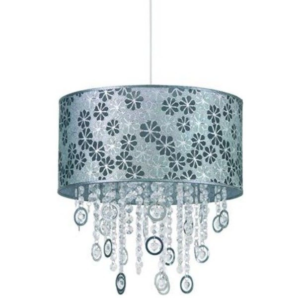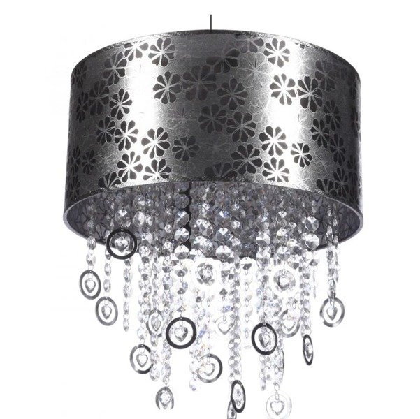 Lampa wisząca abażur srebrna kryształki CALABRIA I zwis śr 40cm 4018