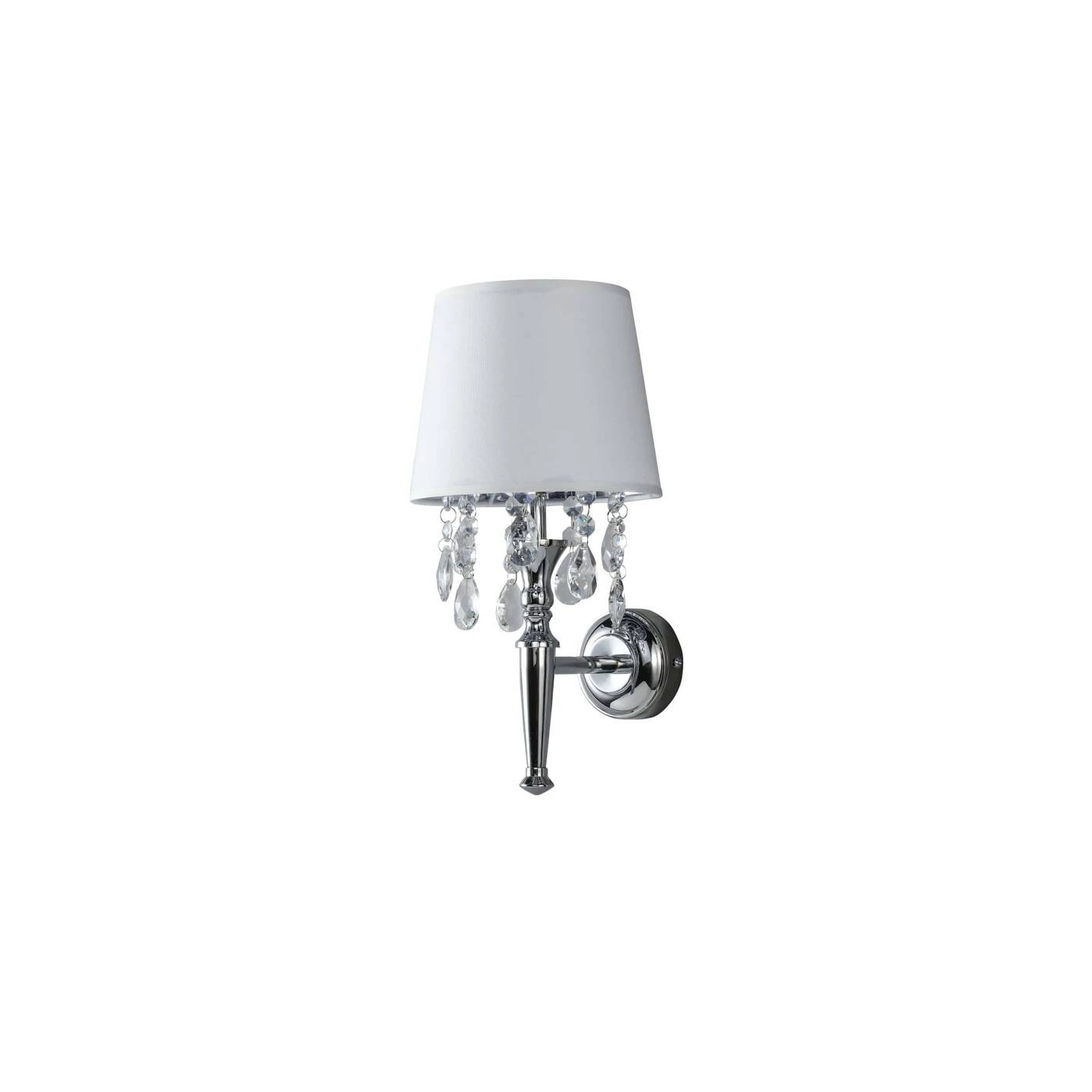 VIGO LP-0412/1W WH to stylowa lampa ścienna z jednym źródłem światła. Korpus lampy wykonano z wysokiej jakości metalu w kolorze chromowym, klosz jest z białej tkaniny. Dodatkowa lampa ozdobiona jest kryształkami, które efektownie odbijają światło. Kinkiet będzie idealnym wyborem do wnętrz urządzonych w stylu nowoczesnym oraz glamour. Doskonale będzie się prezentować w: salonie, jadalni, sypialni, pokoju młodzieżowym, gabinecie, lokalu, przedpokoju, korytarzu. Wysokość lampy to: 33,4 cm, szerokość 17 cm, głębokość 19,6 cm. Źródłem światła jest żarówka typu E14 o mocy max 40W w ilości 1 szt.