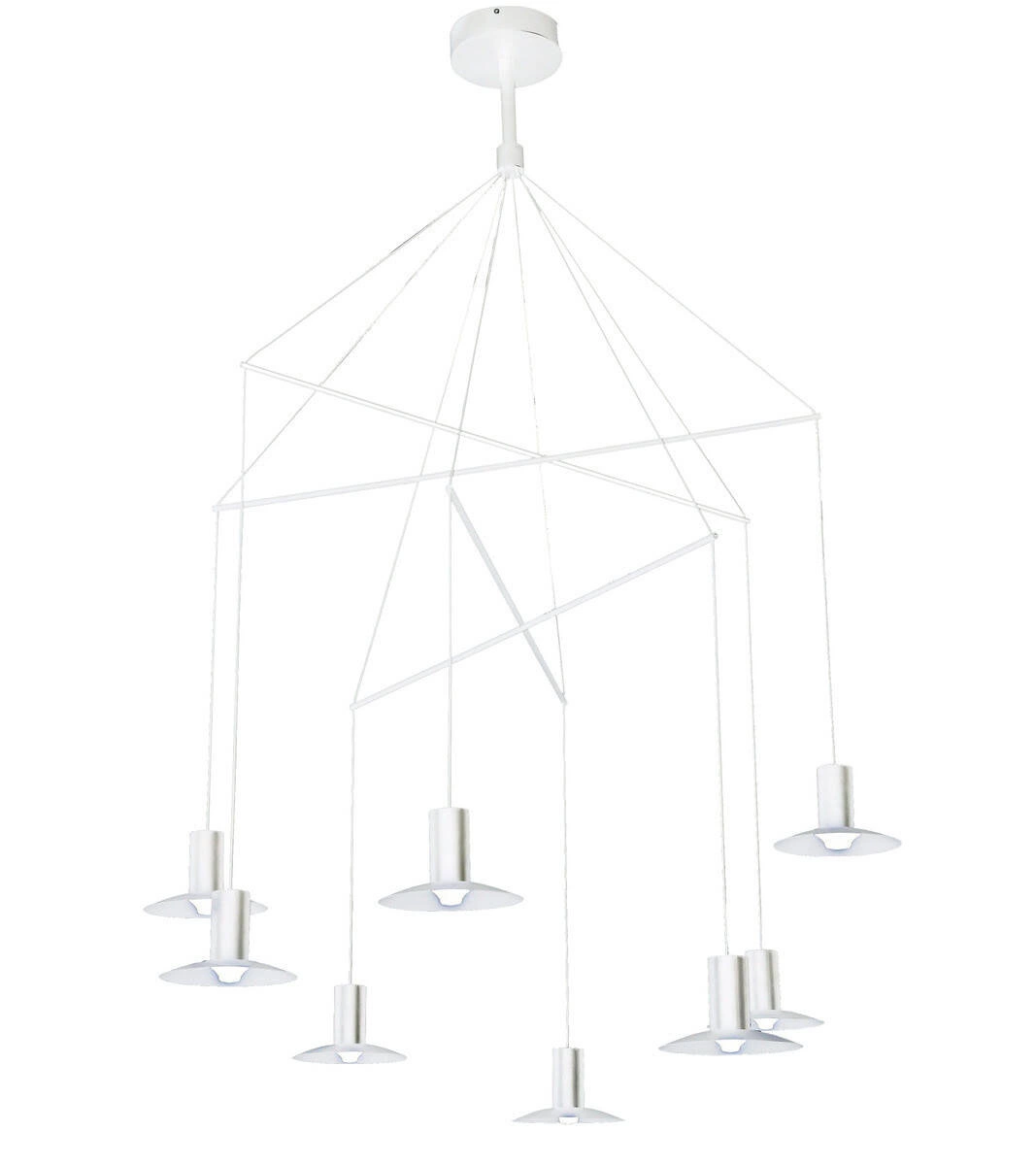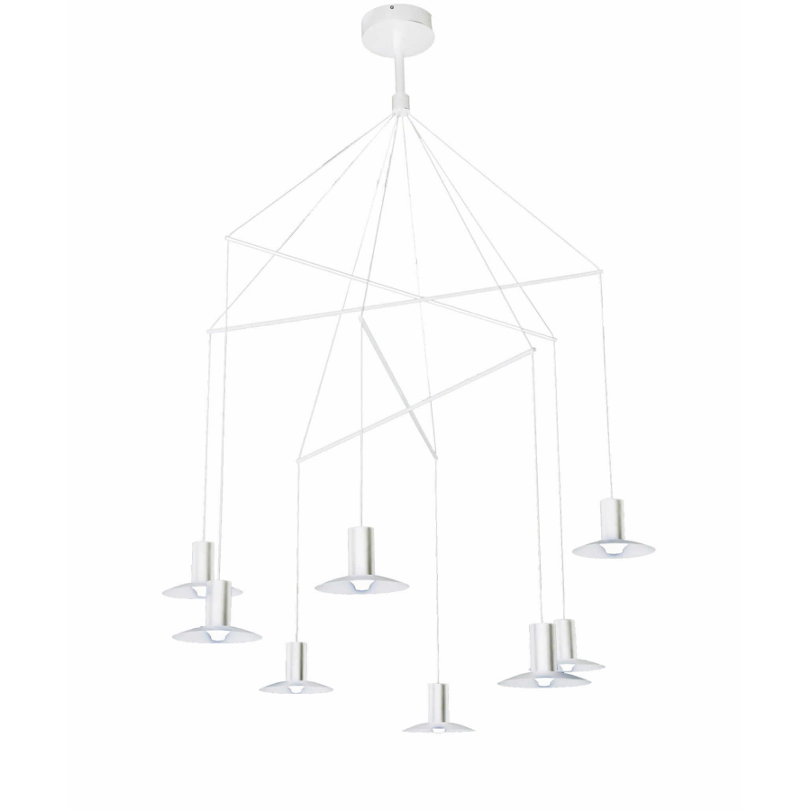 HAT LP-1661/8P WH to stylowa lampa wisząca z ośmioma źródłami światła. Wykonana została z wysokiej jakości metalu w kolorze białym i akrylu. Oprawa będzie idealnym wyborem do wnętrz urządzonych w stylu modernistycznym, industrialnym oraz loftowym. Doskonale będzie się prezentować w: salonie, jadalni, sypialni, pokoju młodzieżowym, gabinecie, lokalu, kuchni. Dużym atutem jest możliwość regulacji wysokości. Wysokość maksymalna lampy to 200 cm, szerokość 82 cm. Lampa posiada zintegrowane źródła światła LED o 3W i ciepłej barwie 3000K w ilości 8 szt.