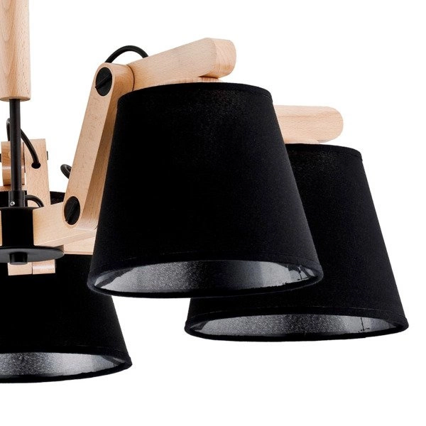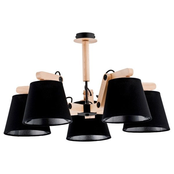 Pięciopunktowa lampa sufitowa, której klosze są w kolorze czarnym wykonane z tkaniny.