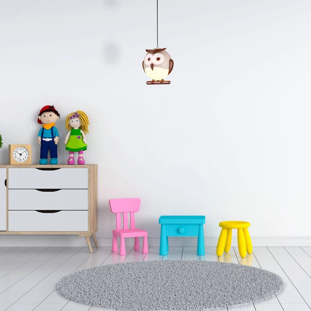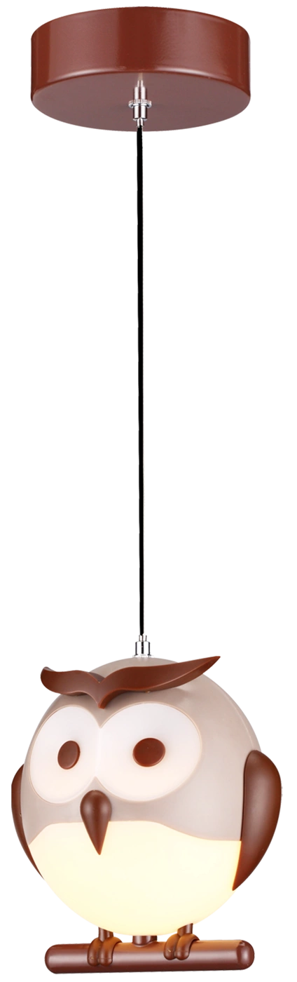 OWL ML243 to nowoczesna lampa wisząca z jednym źródłem światła przeznaczona do dziecięcego pokoju. Wykonana została z tworzywa sztucznego w kolorze brązowym. Elementem wyróżniającym lampy jest klosz w kształcie sowy siedzącej na gałęzi. Wysokość lampy to: 80 cm, szerokość 15 cm, głębokość 13,5 cm. Źródłem światła jest żarówka typu E14 o mocy max 10W LED w ilości 1 szt.