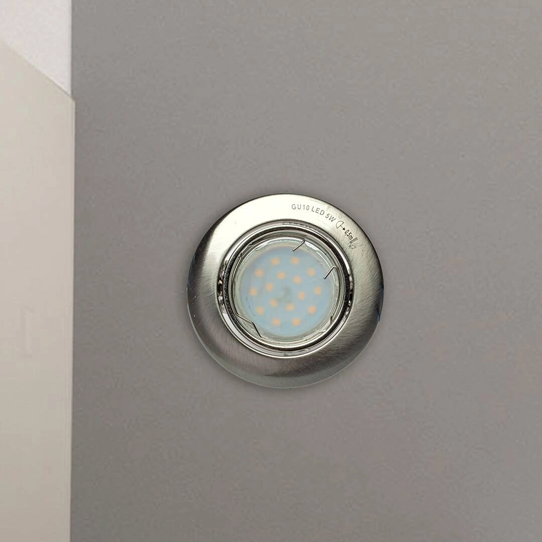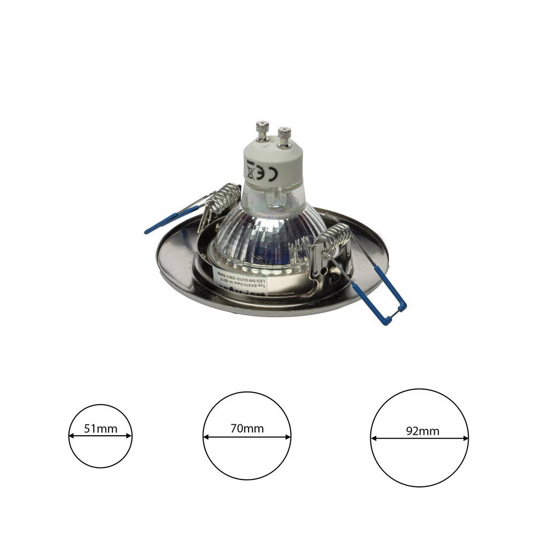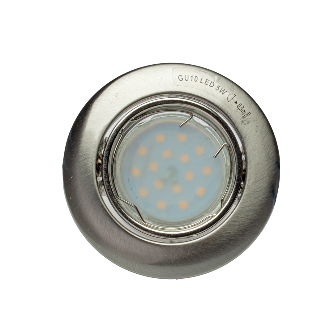 Dołączona żarówka GU10 ma moc 5W, ciepłą barwę światła 3000K i jasność 400lm.