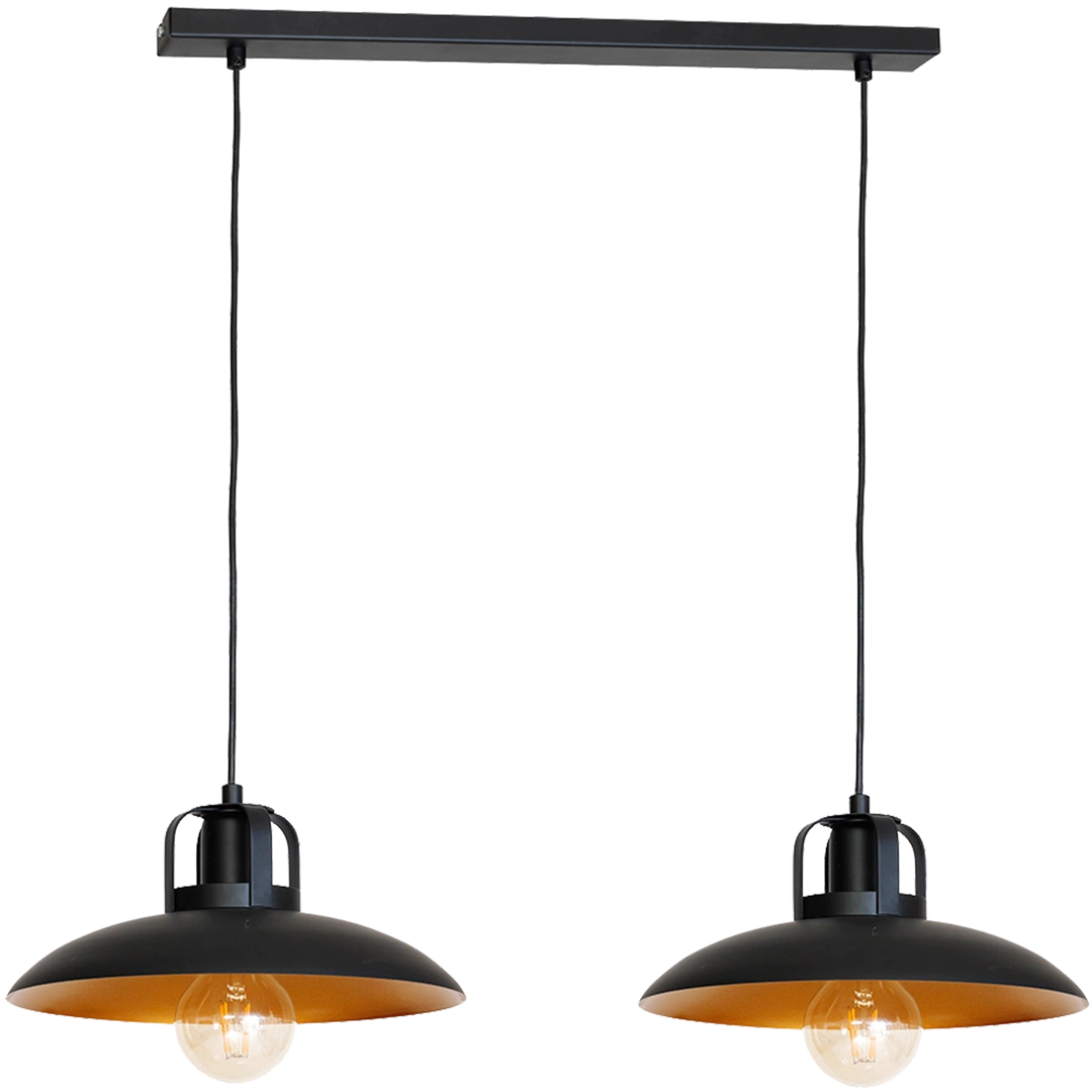 FELIX MLP3683 to lampa wisząca z dwoma źródłami światła. Korpus lampy wykonano z wysokiej jakości metalu w kolorze czarnym. Lampa posiada dwa klosze w kolorze czarnym na zewnątrz, złotym od środka. Kształt klosza sprawia, że odsłonięta żarówka jest elementem ozdobnym lampy dlatego warto wybrać jej dekoracyjny model. Lampa będzie doskonałym wyborem do wnętrz urządzonych w stylu skandynawskim oraz industrialnym. Idealnie wkomponuje się do: salonu, jadalni, sypialni, pokoju młodzieżowego, gabinetu, biura. Dużym atutem jest możliwość regulacji wysokości. Wysokość maksymalna to: 90 cm, szerokość 75 cm, głębokość 30 cm. Klosz ma wysokość 16 cm. Źródłem światła jest żarówka typu E27 o mocy max 60W w ilości 2 szt.