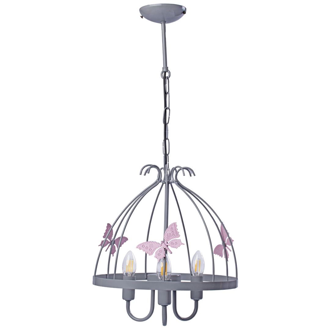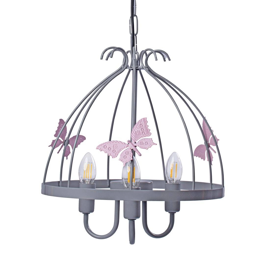 KAGO MLP1170 to nowoczesna lampa wisząca z trzema źródłami światła, która idealnie wkomponuje się do dziecięcego pokoju. Wykonana została z wysokiej jakości metalu w kolorze szarym z różowymi detalami. Lampa posiada klosz z drutu o modnym kształcie eksponującym żarówki zawieszony na stylowym łańcuchu. Dodatkowo klosz ozdobiony jest uroczymi motylkami. Dużą zaletą lampy jest możliwość regulacji wysokości. Wysokość maksymalna to: 60 cm, szerokość 30 cm, głębokość 30 cm. Źródłem światła jest żarówka typu E14 o mocy max 40W w ilości 3 szt.