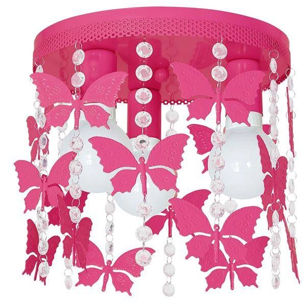 ANGELICA MLP1166 to nowoczesna lampa sufitowa z trzema źródłami światła, która idealnie wkomponuje się do dziecięcego pokoju. Wykonana została z wysokiej jakości metalu w kolorze ciemnoróżowym. Elementem wyróżniającym lampy są zwisające z okrągłej rozety motylki i błyszczące kryształki. Wysokość lampy to: 28 cm, szerokość 30 cm, głębokość 30 cm. Źródłem światła jest żarówka typu E27 o mocy max 60W w ilości 3 szt.