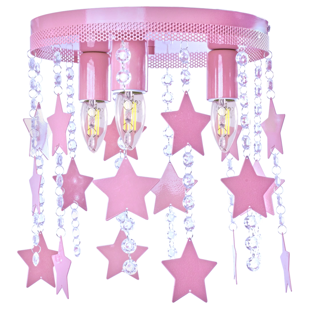 STAR MLP1128 to nowoczesna lampa sufitowa z trzema źródłami światła, która idealnie wkomponuje się do dziecięcego pokoju. Wykonana została z wysokiej jakości metalu w kolorze różowym. Elementem wyróżniającym lampy są zwisające z okrągłej rozety gwiazdki i błyszczące kryształki. Wysokość lampy to: 33 cm, szerokość 30 cm, głębokość 30 cm. Źródłem światła jest żarówka typu E27 o mocy max 60W w ilości 3 szt.