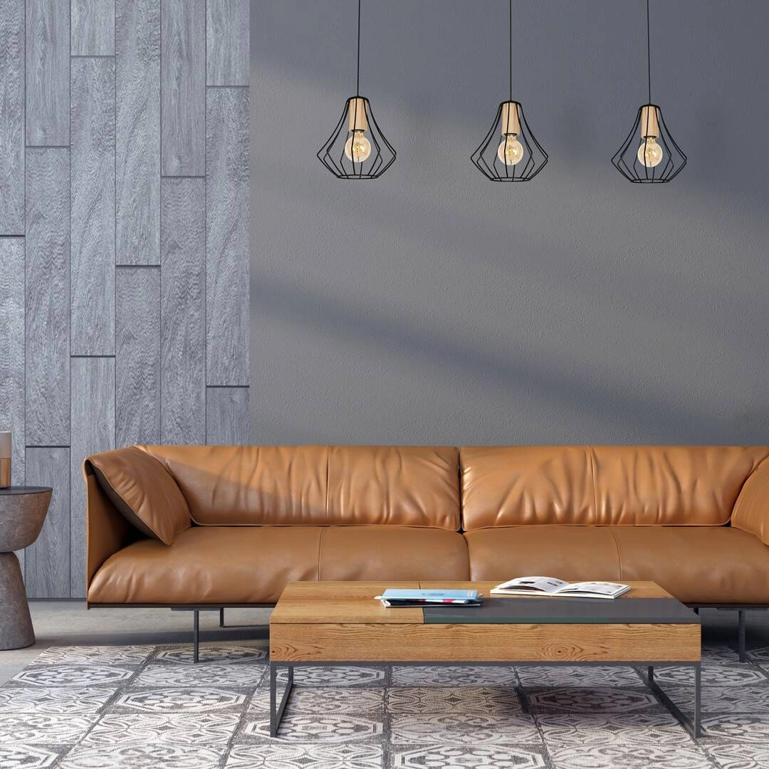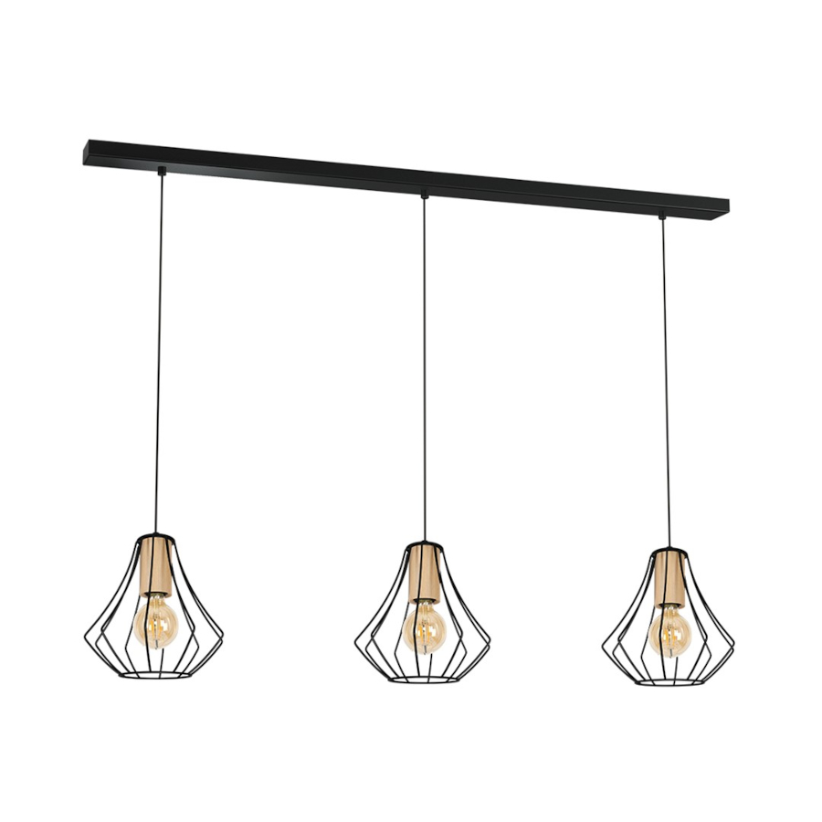 WILL BLACK MLP4191 to lampa wisząca z trzema źródłami światła. Wykonana została z metalu w kolorze czarnym i drewna. Lampa posiada trzy klosze w formie klatki z efektownie wygiętych drutów. Kształt klosza sprawia, że odsłonięta żarówka jest elementem ozdobnym lampy dlatego warto wybrać jej dekoracyjny model. Oprawa żarówki znajduje się w ozdobnym drewnianym elemencie. Lampa będzie idealnym wyborem do nowoczesnych, industrialnych, skandynawskich oraz minimalistycznych wnętrz. Doskonale wkomponuje się do: salonu, sypialni, jadalni, gabinetu, biura, lokalu, pokoju młodzieżowego. Dużym atutem jest możliwość regulacji wysokości. Wysokość maksymalna to: 90 cm, szerokość 90 cm, głębokość 24 cm. Klosz ma wysokość 25 cm. Źródłem światła jest żarówka E27 o mocy max 60W w ilości 3 szt.