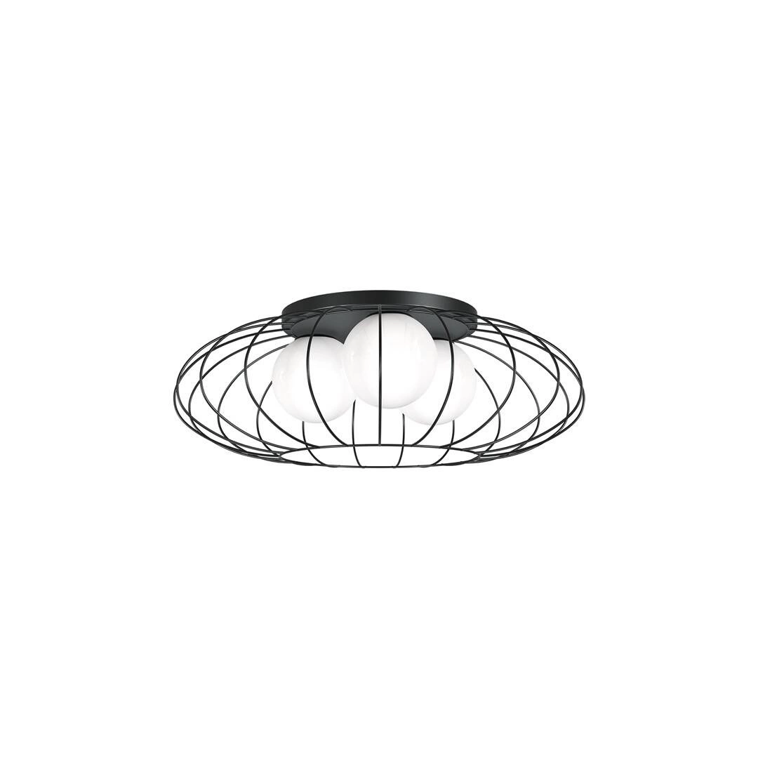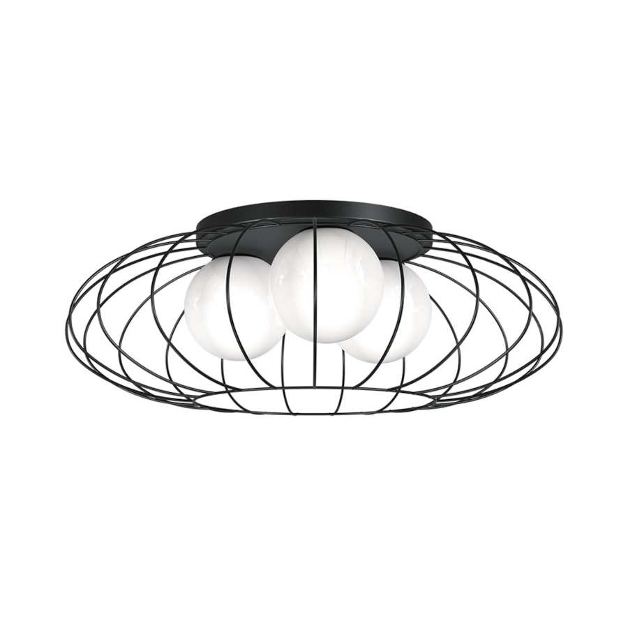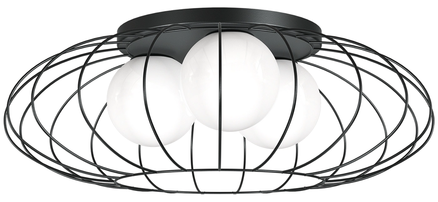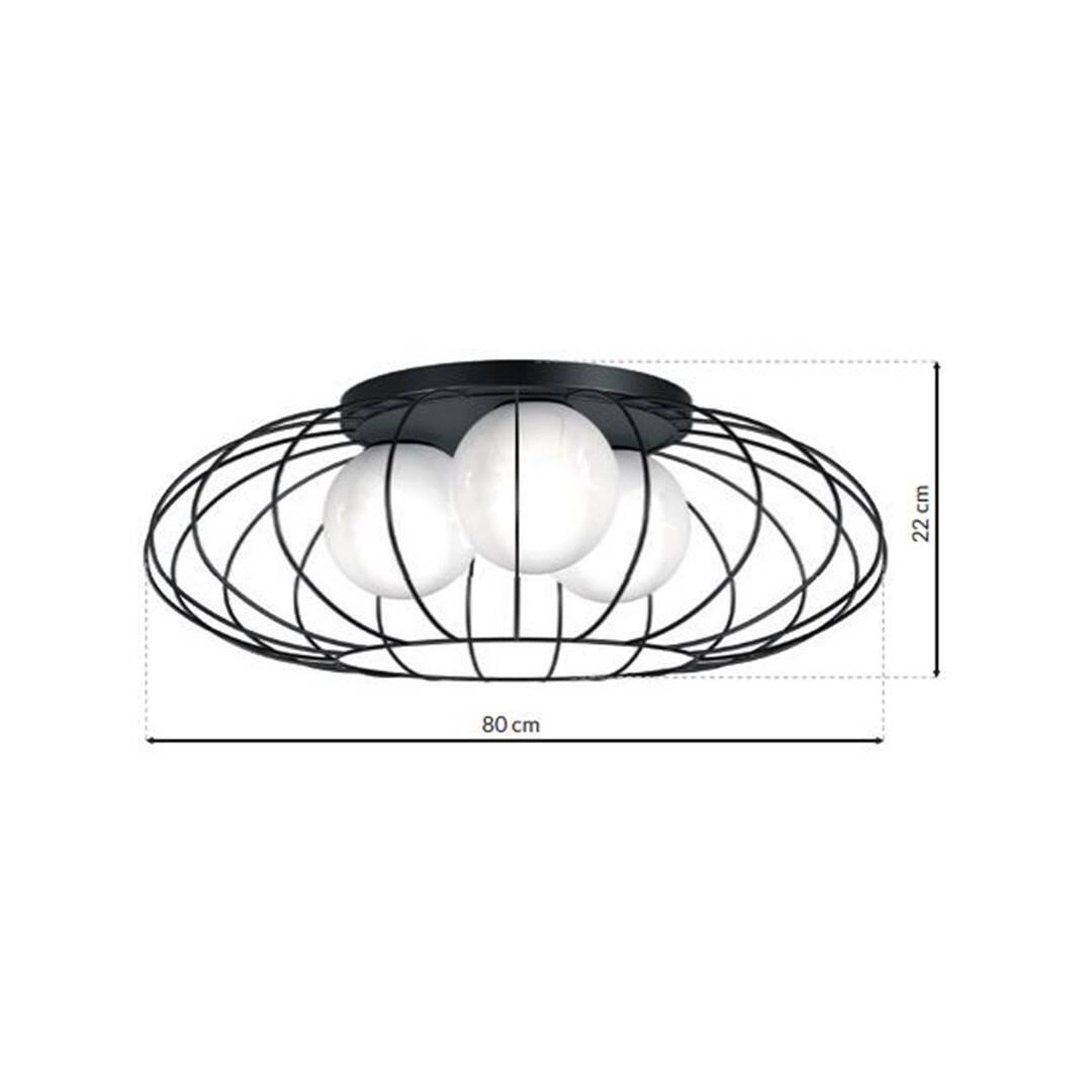 KRONOS BLACK MLP4426 to nowoczesna lampa sufitowa z trzema źródłami światła. Wykonana jest z wysokiej jakości metalu w kolorze czarnym. Lampa posiada trzy szklane białe klosze w kształcie kul. Wyróżniającym się elementem ozdobnym lampy jest instalacja z drutu w kształcie elipsy wokół kloszy. Lampa jest idealnym wyborem do nowoczesnych wnętrz. Doskonale wpasuje się do: salonu, jadalni, sypialni, pokoju młodzieżowego, gabinetu, lokalu. Wysokość lampy to: 22 cm, szerokość 80 cm, głębokość 80 cm. Źródłem światła jest żarówka typu E14 o mocy max 40W w ilości 3 szt.