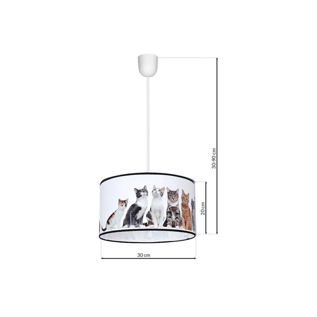 CATS MLP4281 to nowoczesna lampa wisząca z jednym źródłem światła, która idealnie wkomponuje się do dziecięcego pokoju. Wykonana została z wysokiej jakości metalu i PVC. Elementem wyróżniającym lampy jest wielokolorowy abażur z motywem uroczych kotów. Dużą zaletą jest możliwość regulacji wysokości. Wysokość maksymalna lampy to: 90 cm, szerokość 30 cm, głębokość 30 cm. Źródłem światła jest żarówka typu E27 o mocy max 60W w ilości 1 szt.