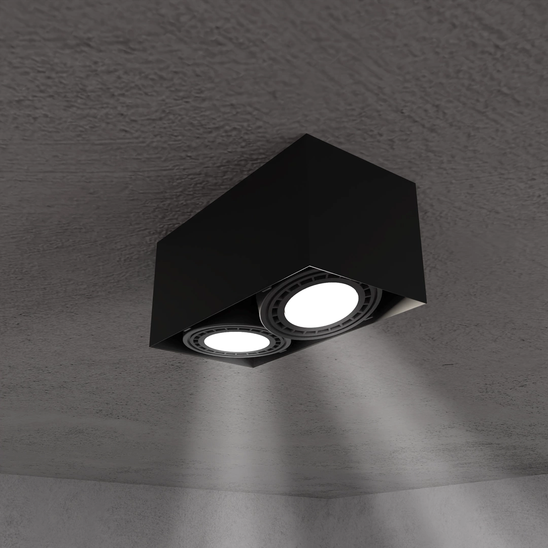 Oprawa Natynkowa BOX Plaza 2xGU10 AR111 Czarna w nowoczesnym stylu