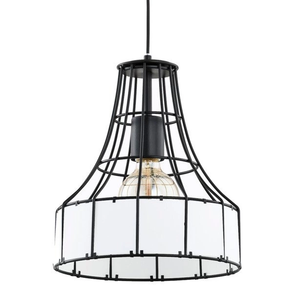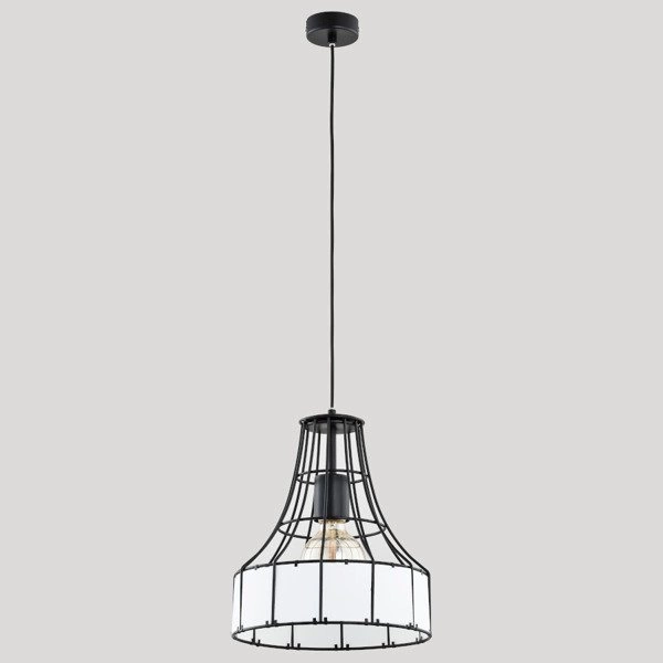 Druciana lampa wisząca BORNEO w kolorze czarnym o średnicy 28cm z białym szklanym kloszem w stylu nowoczesny.