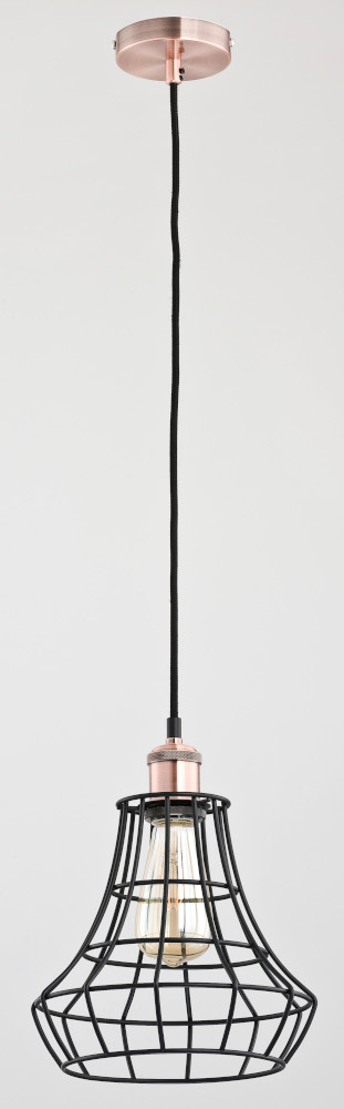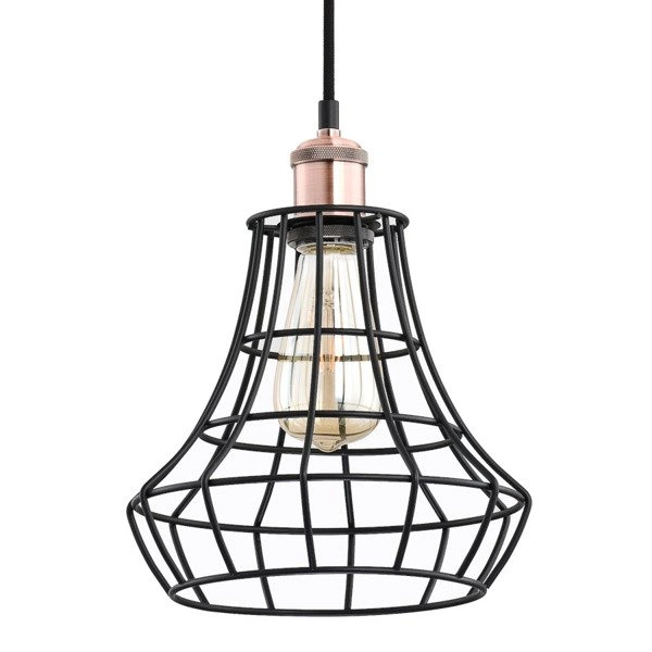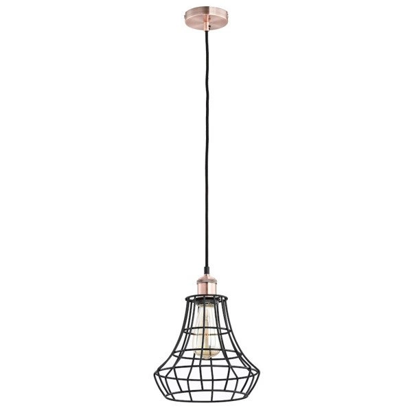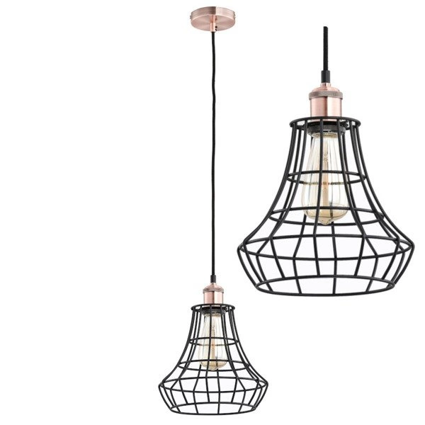 Druciana lampa wisząca SOLIX w kolorze czarnym z dodatkami miedzi o średnicy 22,5cm w nowoczesnym stylu.