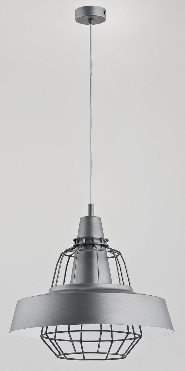 Nowoczesna lampa wisząca TAMARIS w kolorze szarym z czarną kratką o średnicy 40cm w loftowym stylu.