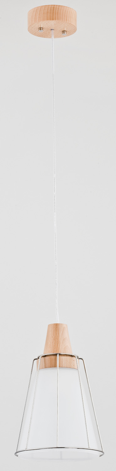 Lampa wisząca VIVIO w kolorze białym z elementami drewna o średnicy 18,5cm w nowoczesnym stylu.