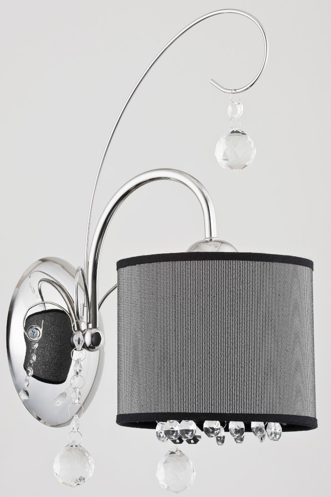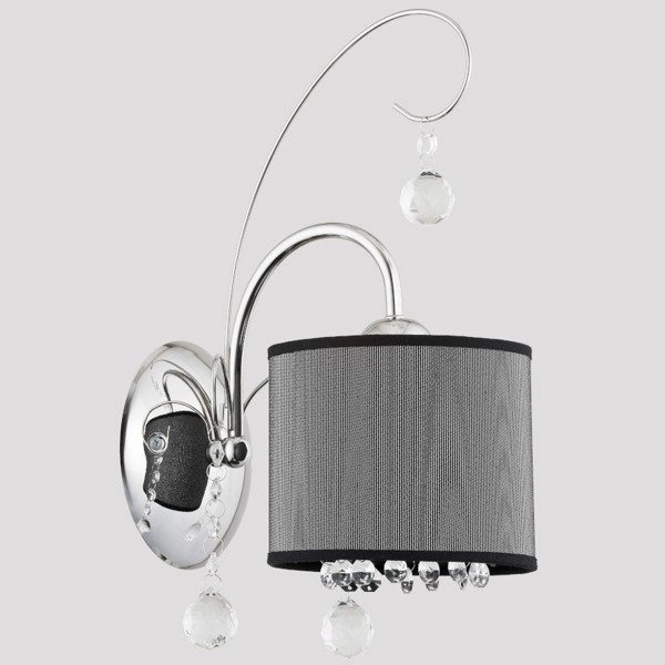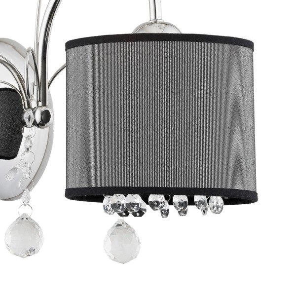 Całość dopełniają szare abażury oraz transparentne kryształki.