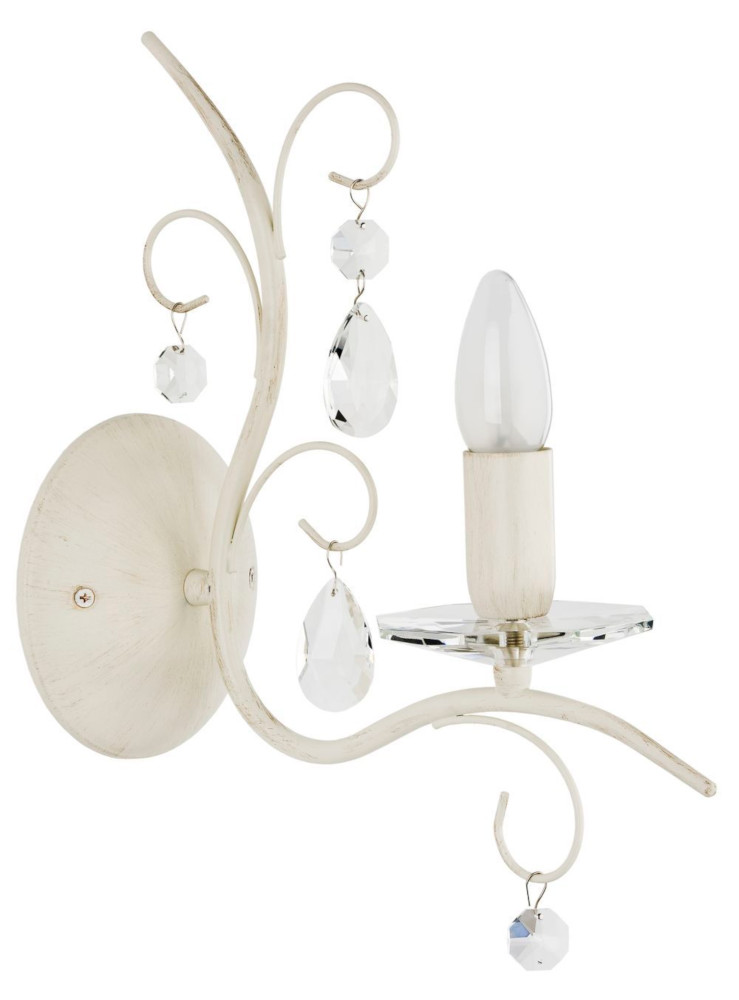 Kinkiet świecznik MONA WHITE kryształki biały antyczny