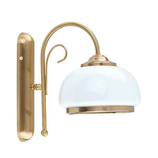 Kinkiet przyciąga uwagę subtelnymi detalami i solidnym wykonaniem. Masywny, szklany klosz otulony złotym akcentem pięknie rozprasza światło, tworząc we wnętrzu przyjemny nastrój. Elegancka, patynowana oprawa dodaje mu klasycznego uroku, dzięki czemu świetnie komponuje się z wnętrzami w stylu vintage i glamour. Doskonale sprawdzi się w stylowych salonach, korytarzach czy sypialniach.