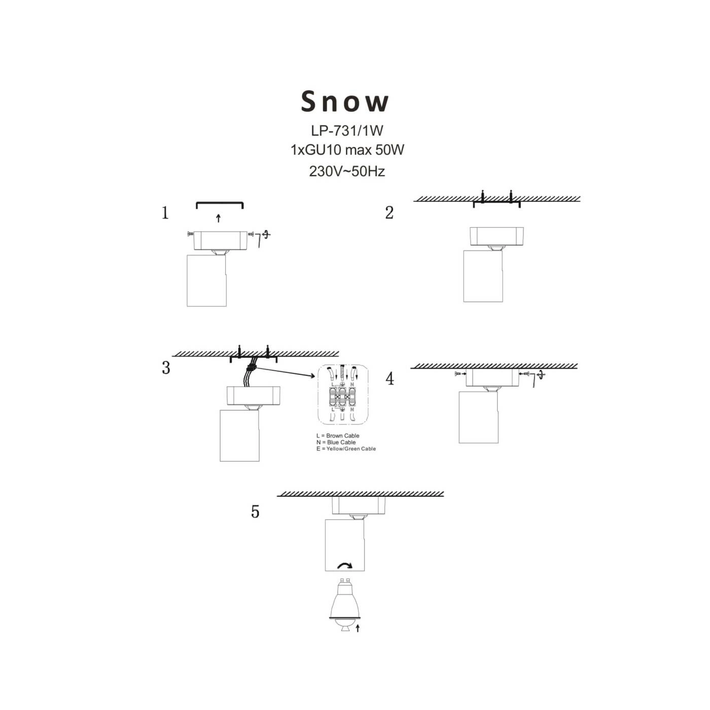 SNOW LP-731/1W WH to stylowa lampa z jednym źródłem światła, która może być zamontowana zarówno na ścianie jak i na suficie. Wykonana została z wysokiej jakości metalu w kolorze białym. Klosz lampy ma możliwość regulacji kąta padania światła. Oprawa będzie idealnym wyborem do wnętrz urządzonych w nowoczesnym stylu. Doskonale będzie się prezentować w: salonie, jadalni, sypialni, pokoju młodzieżowym, gabinecie, lokalu, biurze. Wysokość lampy to: 10,5 cm, szerokość 6 cm, głębokość 6 cm. Źródłem światła jest żarówka typu GU10 o mocy max 50W w ilości 1 szt.