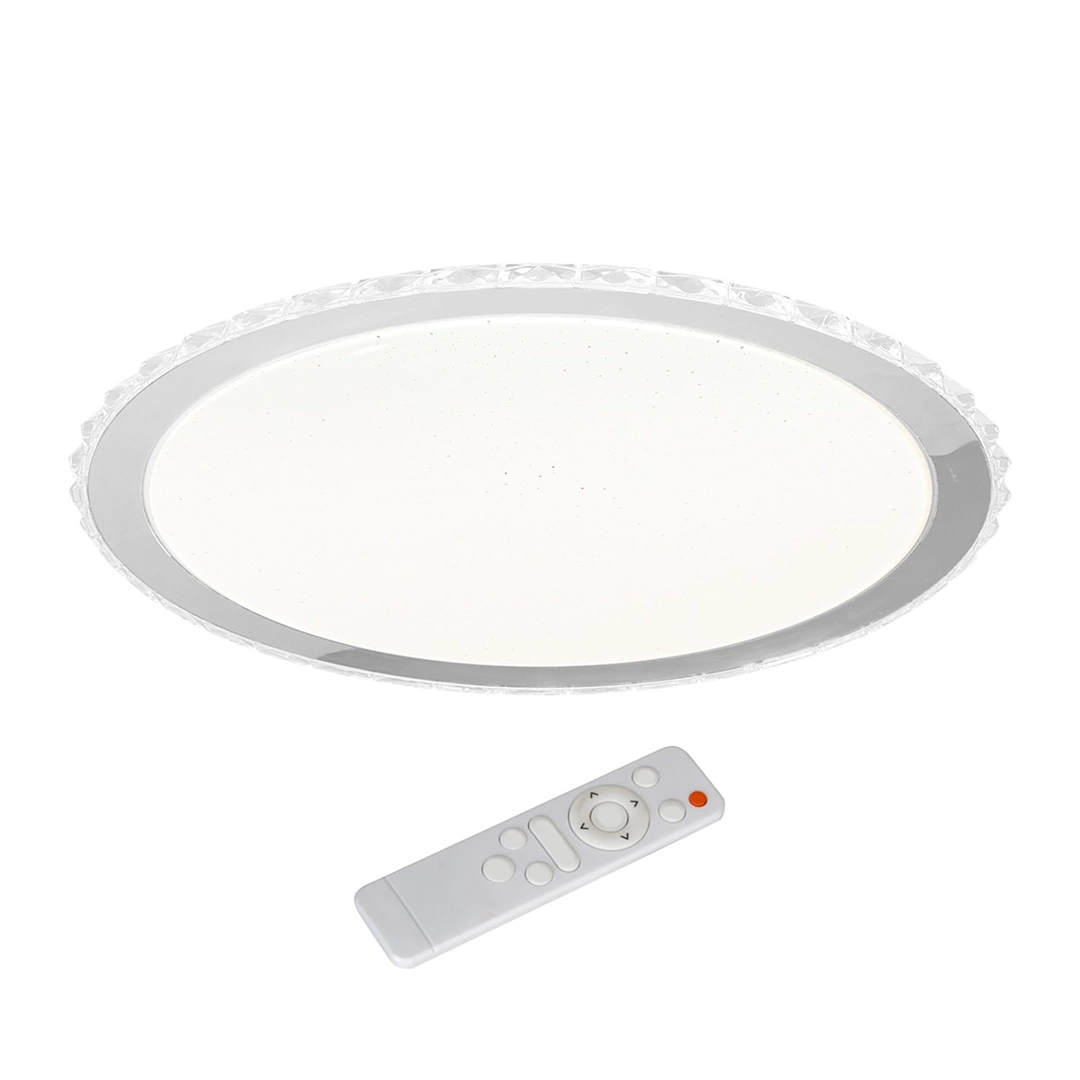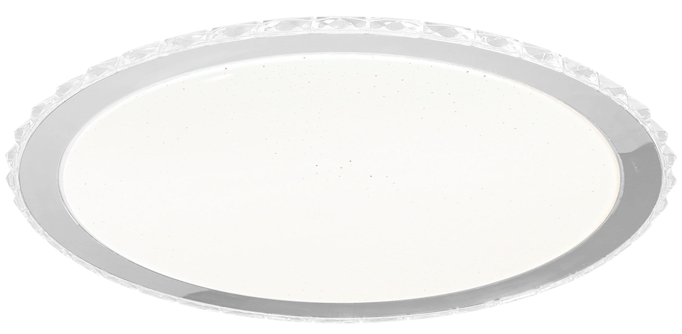 LAYLA ML4222 to nowoczesna lampa sufitowa z jednym źródłem światła. Wykonana została z wysokiej jakości metalu, tworzywa sztucznego i kryształu. Lampa ma kształt klasycznego spodku w kolorze białym z chromowym detalem. Dodatkowo klosz wykończony jest kryształową obwódką, która sprawia że po zapaleniu rozbłyskujące światło tworzy efekt gwiezdnego nieba. Natężenie światła regulowane jest za pomocą pilota, którym można również zmieniać barwę światła pomiędzy 3000K, 4000K, 6000K. Plafon będzie idealnym wyborem do nowoczesnych: salonów oraz sypialni. Lampa ma wysokość 6 cm i średnicę 50 cm. W lampie zastosowano wymienny moduł LED o mocy 66W, zmiennej barwie światła 3000K-6000K i jasności 3300lm.