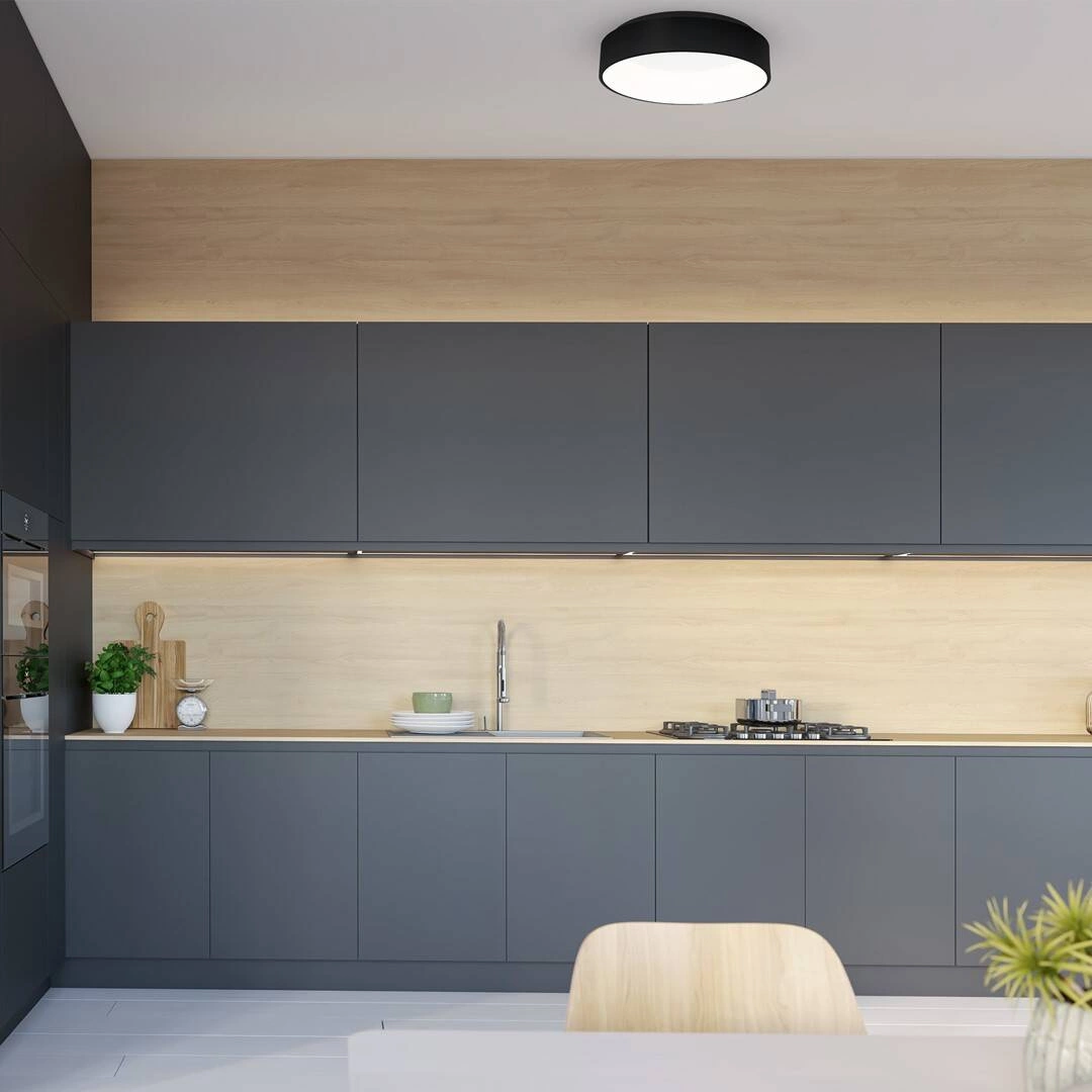 Nowoczesny plafon z serii Ohio wykonany został z wysokiej jakości materiałów: metalu oraz akrylu. Oprawa ma średnicę 45 cm i zamontowano w niej wymienny moduł LED o mocy 24 W.