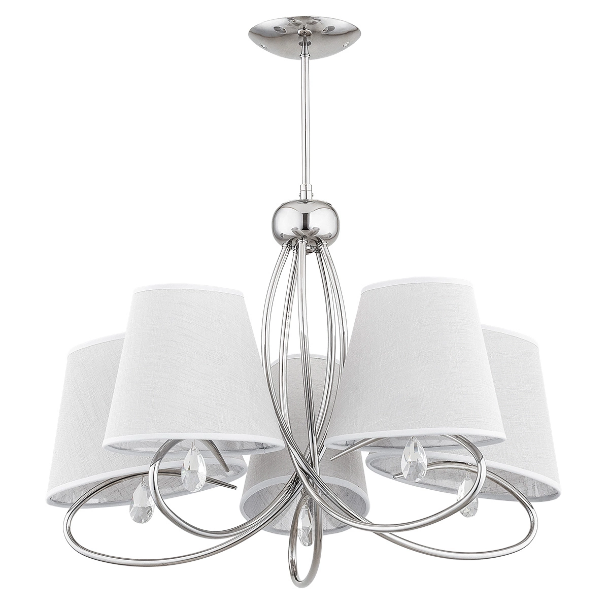 Lampa sufitowa SIENA wykonana z metalu, abażurów oraz szklanych kryształków.