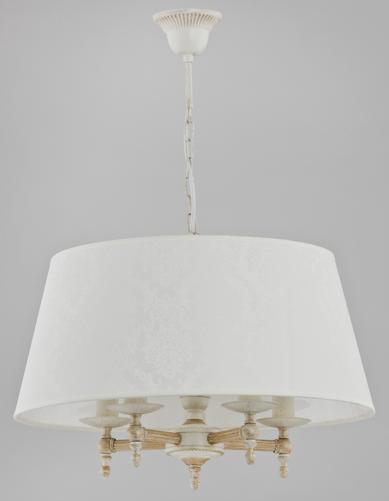 Żyrandol klasyczny z abażurem ROKSANA WHITE śr. 50cm biały antyczny/szary