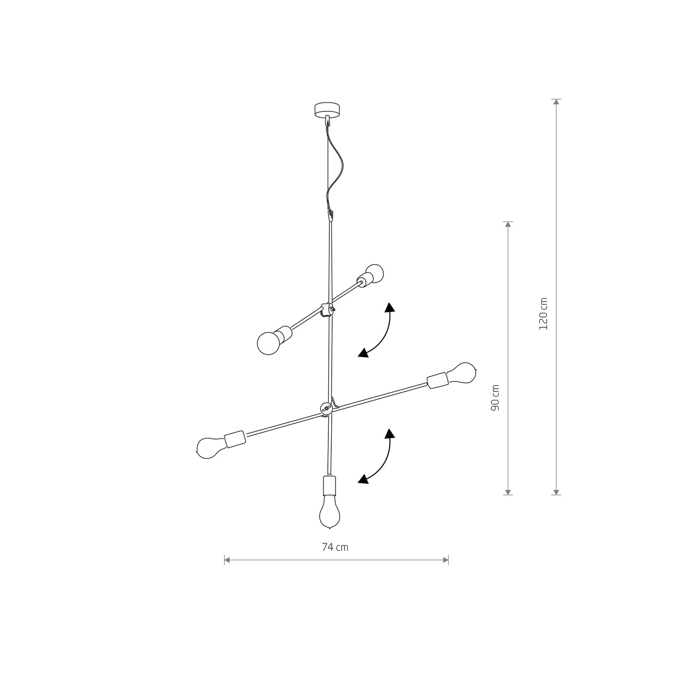 Zwis po zamontowaniu może zmieniać swoją formę tzn. możemy zmieniać położenie obu poziomych ramion lampy tak jak chcemy, czy to idealnie poziomo, czy też lekko lub bardziej pod kątem.