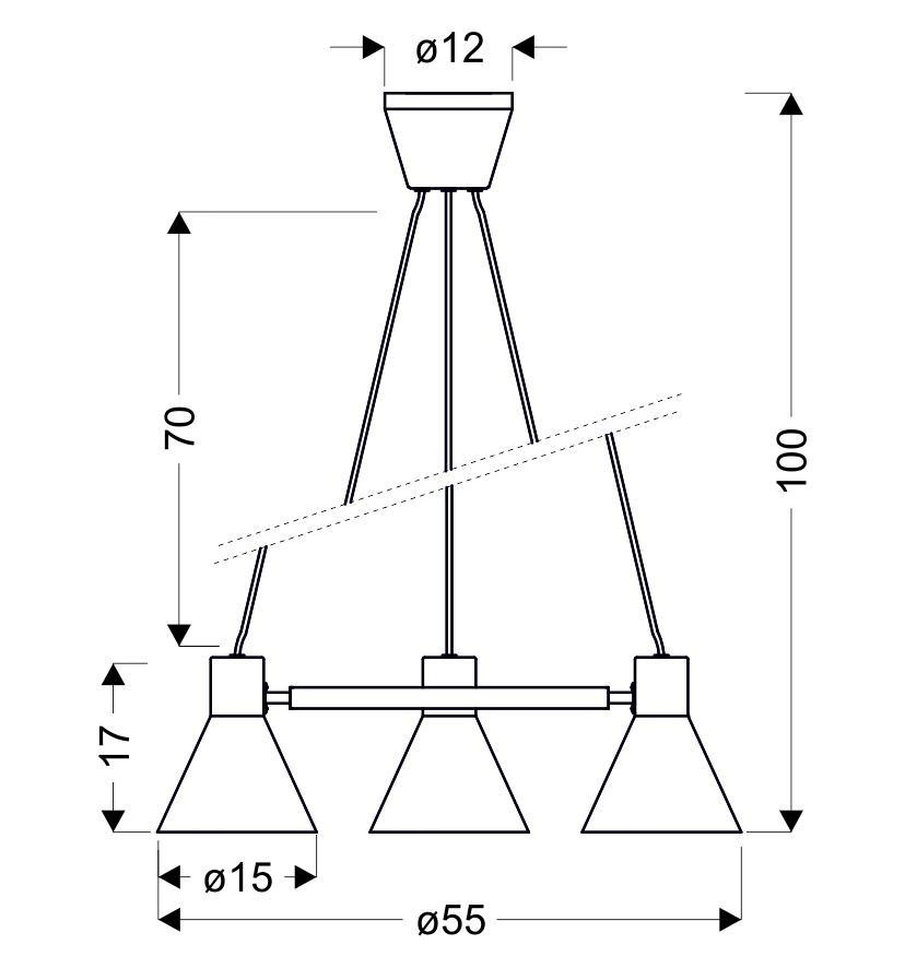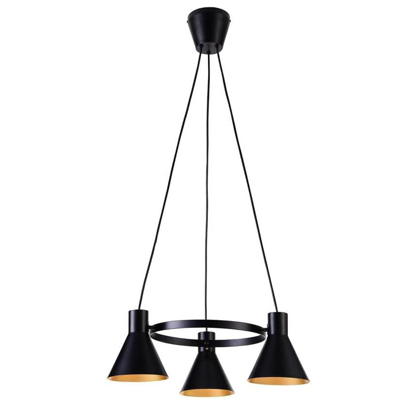 MORE 33-71156 to stylowa lampa wisząca z trzema źródłami światła. Wykonana została z wysokiej jakości metalu w kolorze czarnym matowym ze złotymi detalami. Oprawa będzie idealnym wyborem do wnętrz urządzonych w stylu industrialnym oraz loftowym. Doskonale będzie się prezentować w: salonie, jadalni, sypialni, pokoju młodzieżowym, gabinecie, lokalu, biurze, kuchni. Dużym atutem jest możliwość regulacji wysokości. Wysokość maksymalna lampy to: 100 cm, średnica 55 cm. Źródłem światła jest żarówka typu E27 o mocy max 40W w ilości 3 szt.