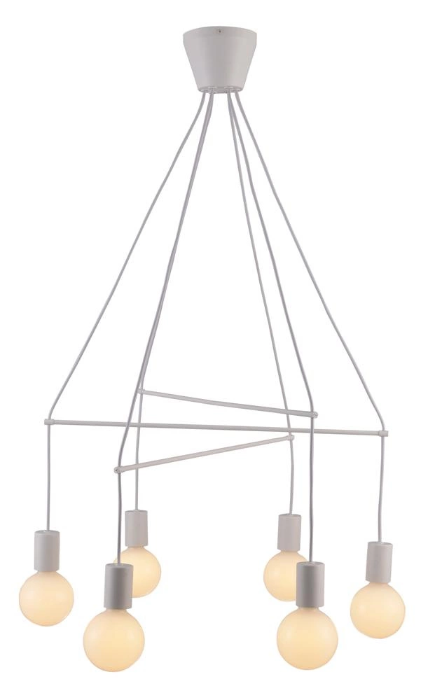 ALTO 36-70920 to nowoczesna lampa wisząca z sześcioma źródłami światła. Wykonana została z wysokiej jakości metalu w kolorze białym matowym. Lampa nie posiada kloszy co sprawia, że odsłonięte żarówki mogą być elementami ozdobnymi dlatego warto wybrać ich dekoracyjny model. Oprawa będzie idealnym wyborem do wnętrz urządzonych w stylu nowoczesnym oraz industrialnym. Doskonale będzie się prezentować w: salonie, sypialni, jadalni, pokoju młodzieżowym, gabinecie, biurze, lokalu, kuchni. Dużą zaletą jest możliwość regulacji wysokości. Wysokość maksymalna lampy to: 95 cm, szerokość 67 cm, głębokość 67 cm. Źródłem światła jest żarówka typu E27 o mocy max 40W w ilości 6 szt.