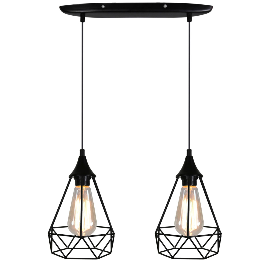 GRAF 32-62895 to lampa wisząca z dwoma źródłami światła. Wykonana została z wysokiej jakości metalu w kolorze czarnym. Lampa posiada dwa klosze z drutu o modnym kształcie eksponującym żarówkę. Oprawa będzie idealnym wyborem do wnętrz urządzonych w stylu industrialnym oraz loftowym. Doskonale będzie się prezentować w: salonie, sypialni, jadalni, pokoju młodzieżowym, gabinecie, biurze, lokalu, kuchni. Dużą zaletą jest możliwość regulacji wysokości. Wysokość maksymalna lampy to: 115 cm, szerokość 49 cm, głębokość 19 cm. Źródłem światła jest żarówka typu E27 o mocy max 60W w ilości 2 szt.