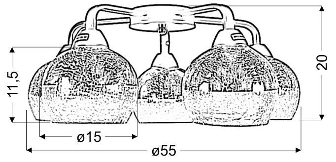 CROMINA 98-55668 to nowoczesna lampa sufitowa z pięcioma źródłami światła. Podstawę lampy wykonano z wysokiej jakości stali w kolorze chromowym. Lampa posiada pięć dwukolorowych kloszy: lustrzany chrom na górze, transparentny na dole z efektem popękanej struktury szkła po całości. Oprawa będzie idealnym wyborem do wnętrz urządzonych w nowoczesnym stylu. Doskonale będzie się prezentować w: salonie, jadalni, sypialni, pokoju młodzieżowym, lokalu, kuchni, przedpokoju, korytarzu. Wysokość lampy to: 20 cm, szerokość 55 cm, głębokość 55 cm. Źródłem światła jest żarówka typu E27 o mocy max 60W w ilości 5 szt.