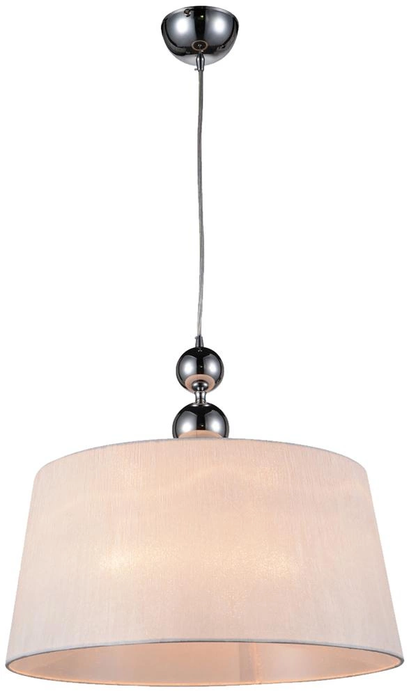 CLARA 31-21601 to nowoczesna lampa wisząca z jednym źródłem światła. Zawiesie lampy wykonano z wysokiej jakości metalu w kolorze chromowym. Abażur jest z białej kreszowanej tkaniny. Oprawa będzie idealnym wyborem do wnętrz urządzonych w nowoczesnym stylu. Doskonale będzie się prezentować w: salonie, sypialni, jadalni, pokoju młodzieżowym, gabinecie, biurze, lokalu. Dużą zaletą jest możliwość regulacji wysokości. Wysokość maksymalna lampy to: 110 cm, szerokość 45 cm, głębokość 45 cm. Źródłem światła jest żarówka typu E27 o mocy max 60W w ilości 1 szt.