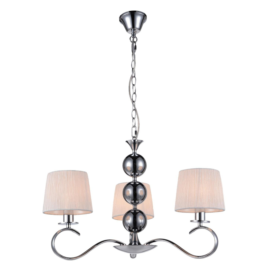 CLARA 33-21618 to nowoczesna lampa wisząca z trzema źródłami światła. Korpus lampy wykonano z wysokiej jakości metalu w kolorze chromowym. Abażury są z białej kreszowanej tkaniny. Żyrandol będzie idealnym wyborem do wnętrz urządzonych w nowoczesnym stylu. Doskonale będzie się prezentować w: salonie, sypialni, jadalni, pokoju młodzieżowym, gabinecie, biurze, lokalu. Dużą zaletą jest możliwość regulacji wysokości. Wysokość maksymalna lampy to: 110 cm, szerokość 60 cm, głębokość 60 cm. Źródłem światła jest żarówka typu E14 o mocy max 40W w ilości 3 szt.