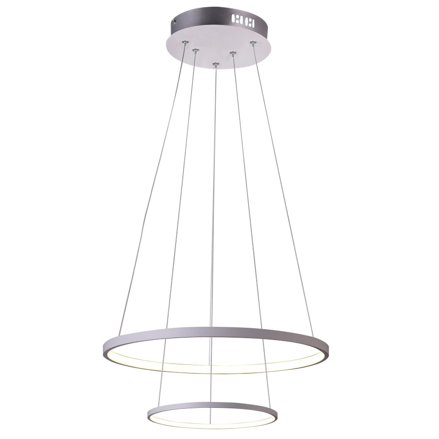 LUNE 32-64752 to nowoczesna lampa wisząca z dwoma źródłami światła. Lampa składa się z dwóch białych aluminiowych pierścieni zwisających z okrągłej rozety na stalowych linkach. Źródła światła znajdują się pod mlecznymi paskami z tworzywa. Lampa będzie idealnym wyborem do nowoczesnych wnętrz. Doskonale będzie się prezentować w: salonie, jadalni, sypialni, pokoju młodzieżowym, gabinecie, burze, lokalu, korytarzu, przedpokoju, kuchni. Dużą zaletą jest możliwość regulacji wysokości. Wysokość maksymalna lampy to: 110 cm, szerokość 50 cm, głębokość 50 cm. W lampie zastosowano źródła światła LED o mocy 40W, neutralnej barwie światła 4000K i jasności 2000 lm.