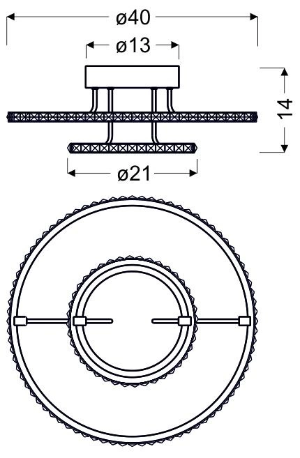 ADEL 98-69634 to designerska lampa sufitowa z dwoma źródłami światła. Korpus lampy wykonano z wysokiej jakości stali w kolorze chromowym. Źródła światła umieszone są pod transparentnymi szklanymi kryształkami, które efektownie rozpraszają światło. Oprawa będzie idealnym wyborem do wnętrz urządzonych w nowoczesnym stylu. Doskonale będzie się prezentować w: salonie, sypialni, jadalni, pokoju młodzieżowym, gabinecie, biurze, lokalu, kuchni, przedpokoju, korytarzu. Wysokość lampy to: 14 cm, szerokość 40 cm, głębokość 40 cm. Źródłem światła jest zintegrowany LED o mocy 36W, ciepłej barwie światła 3000K i jasności 2800lm